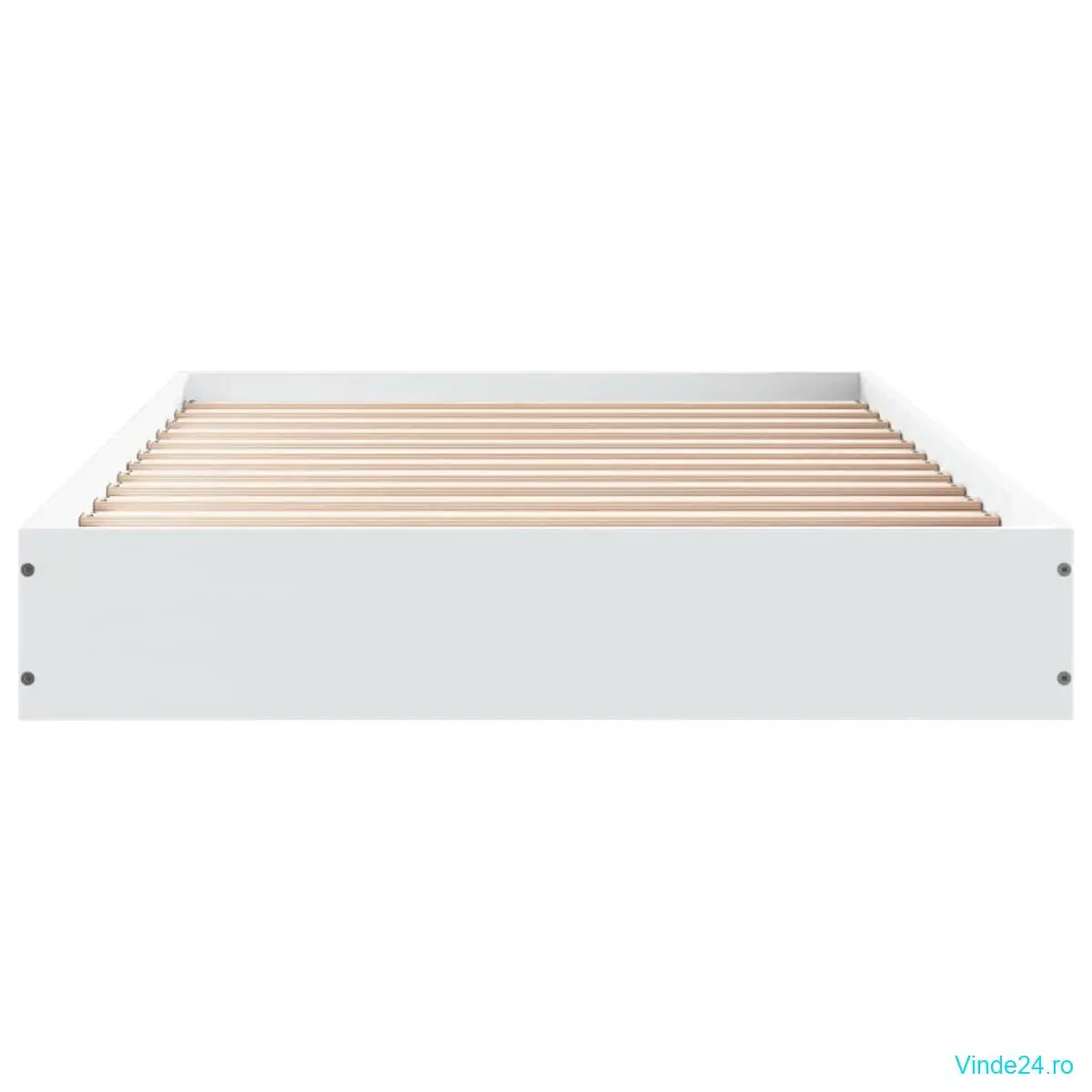 vidaXL Cadru de pat, alb, 150x200 cm, lemn prelucrat