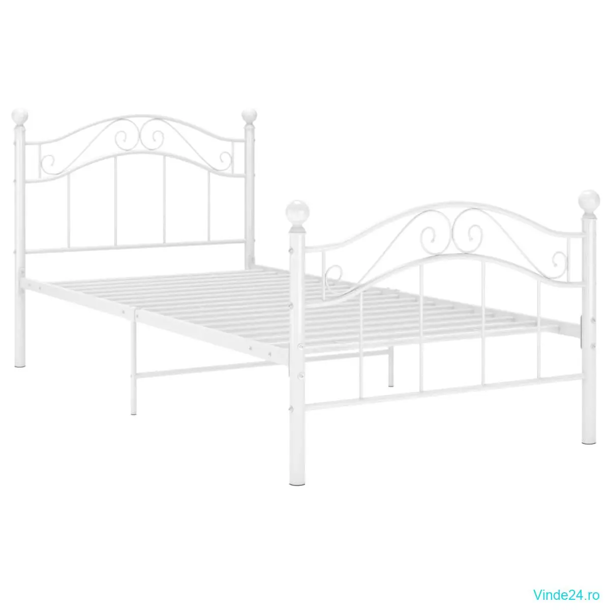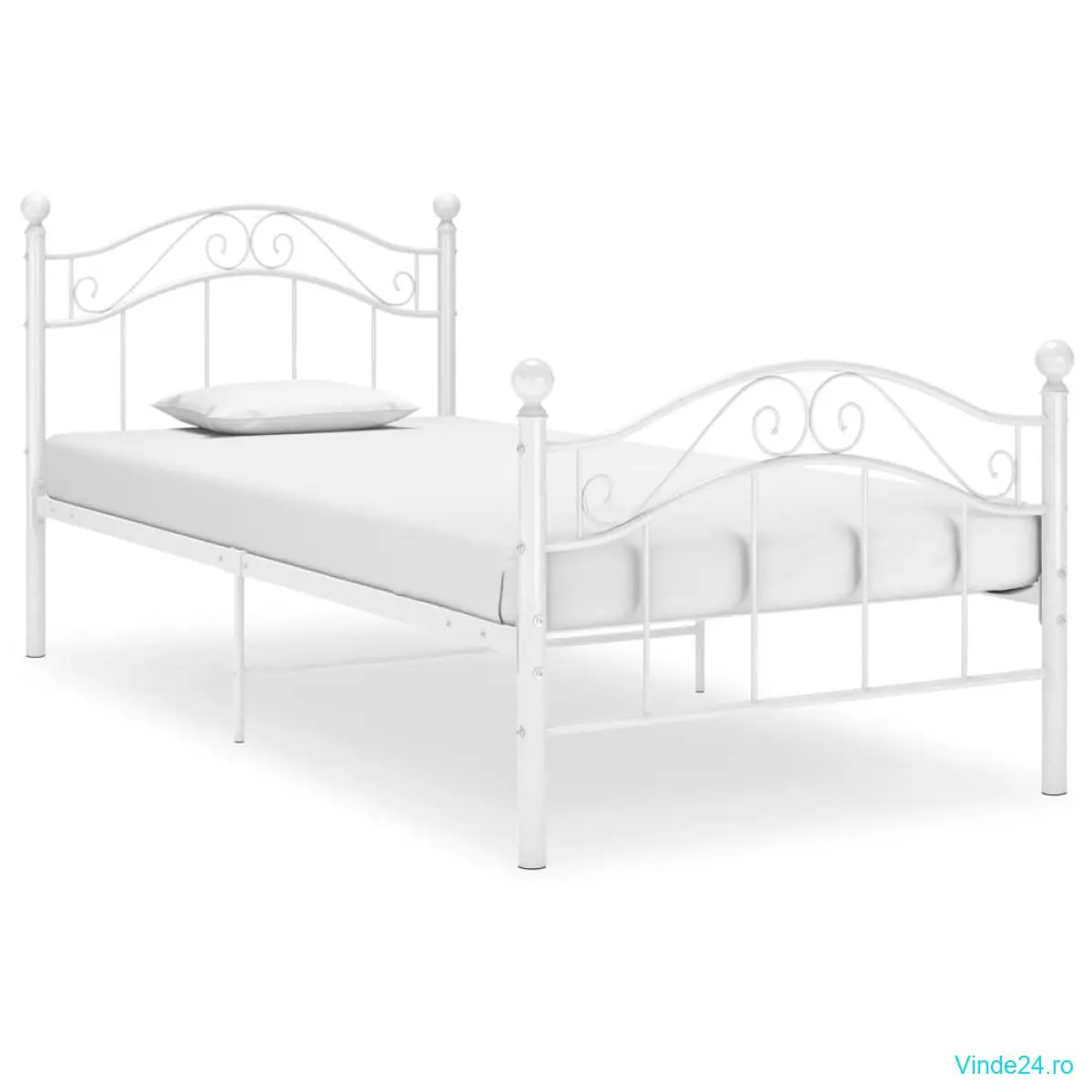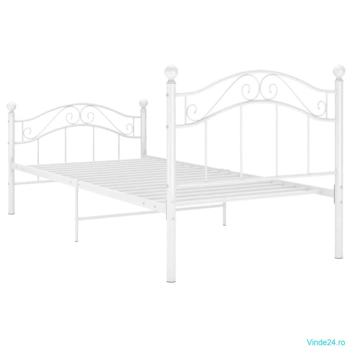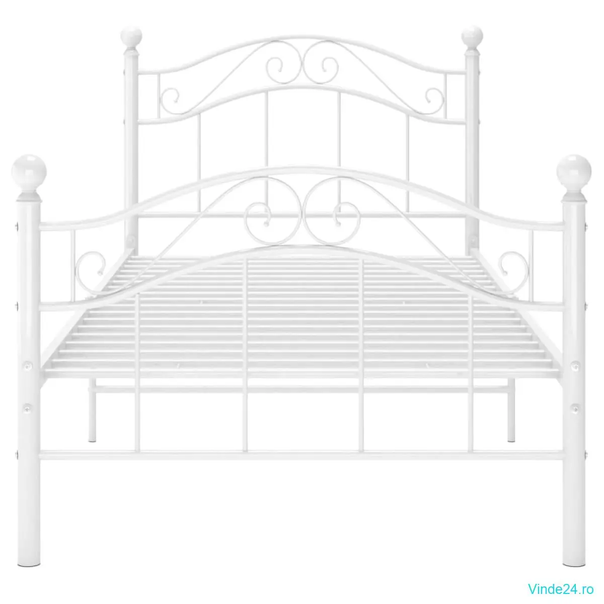 vidaXL Cadru de pat, alb, 90x200 cm, metal