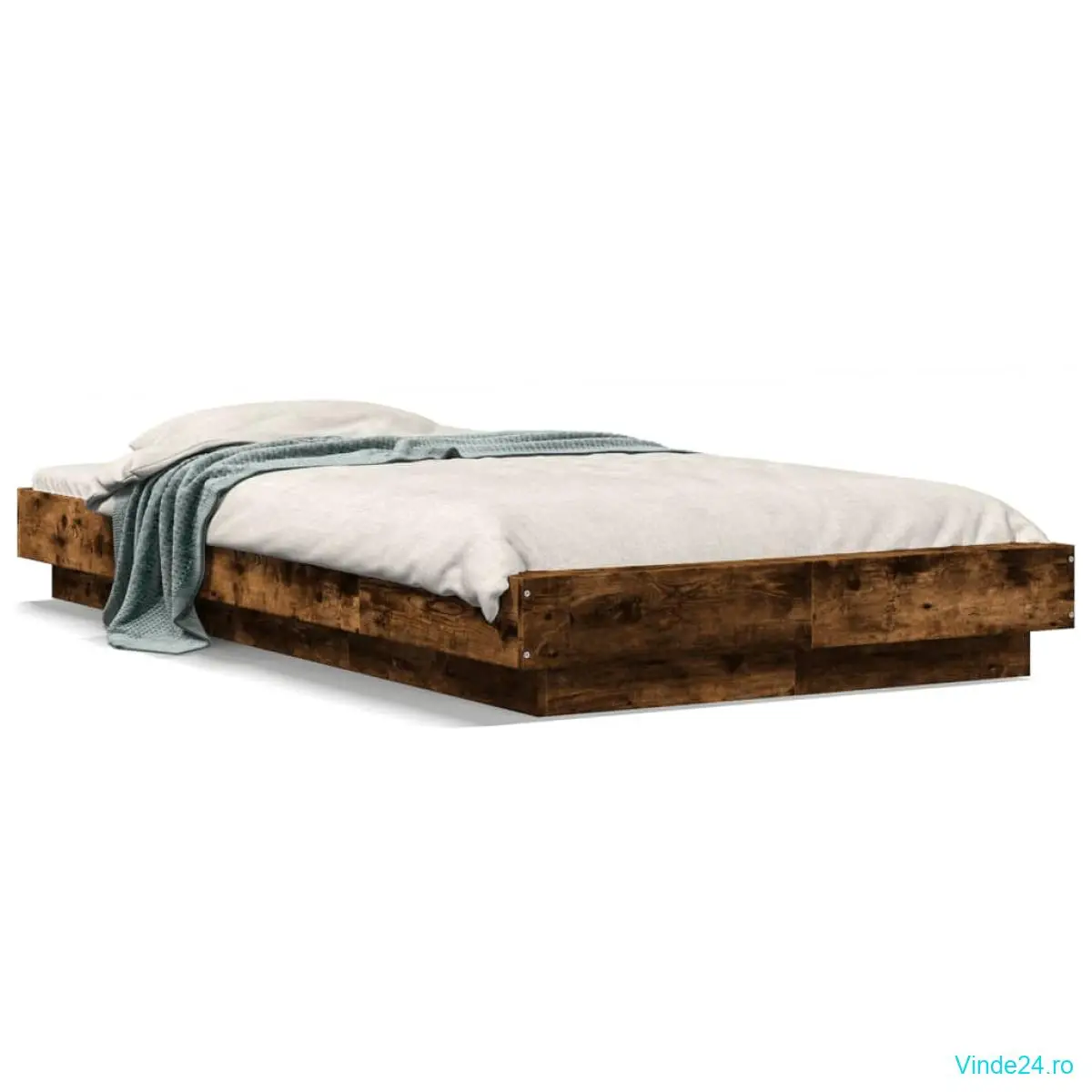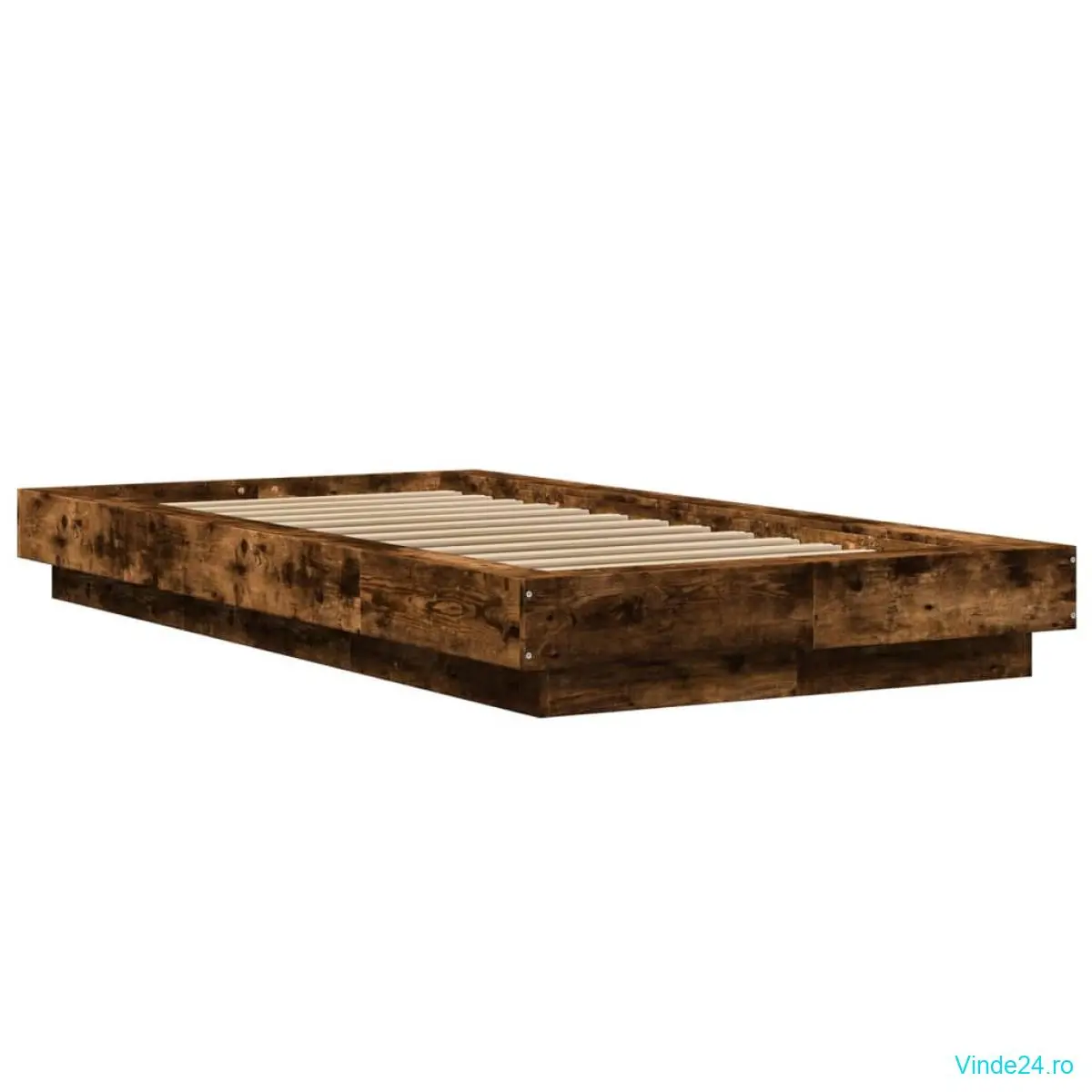 vidaXL Cadru de pat cu LED, stejar fumuriu, 100x200 cm, lemn prelucrat