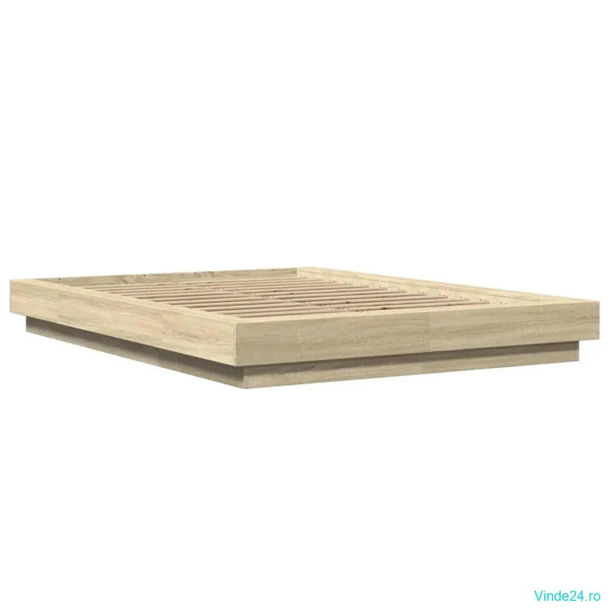 vidaXL Cadru de pat cu LED stejar sonoma 140x200 cm lemn prelucrat