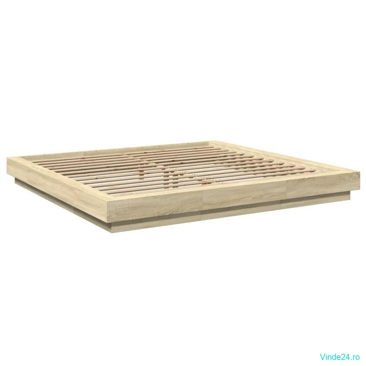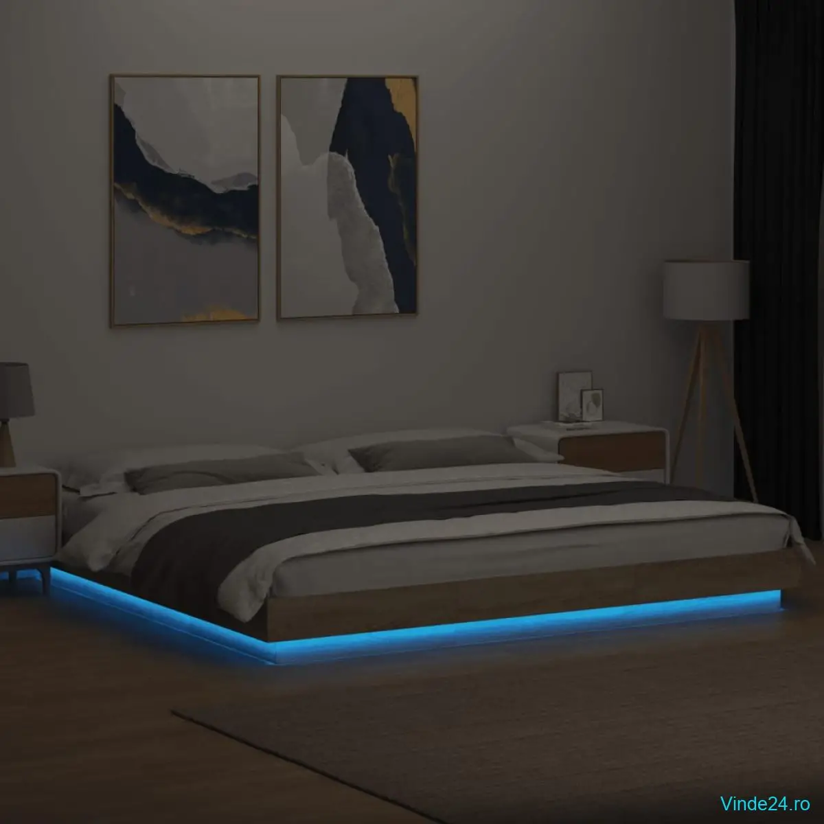 vidaXL Cadru de pat cu LED stejar sonoma 180x200 cm lemn prelucrat