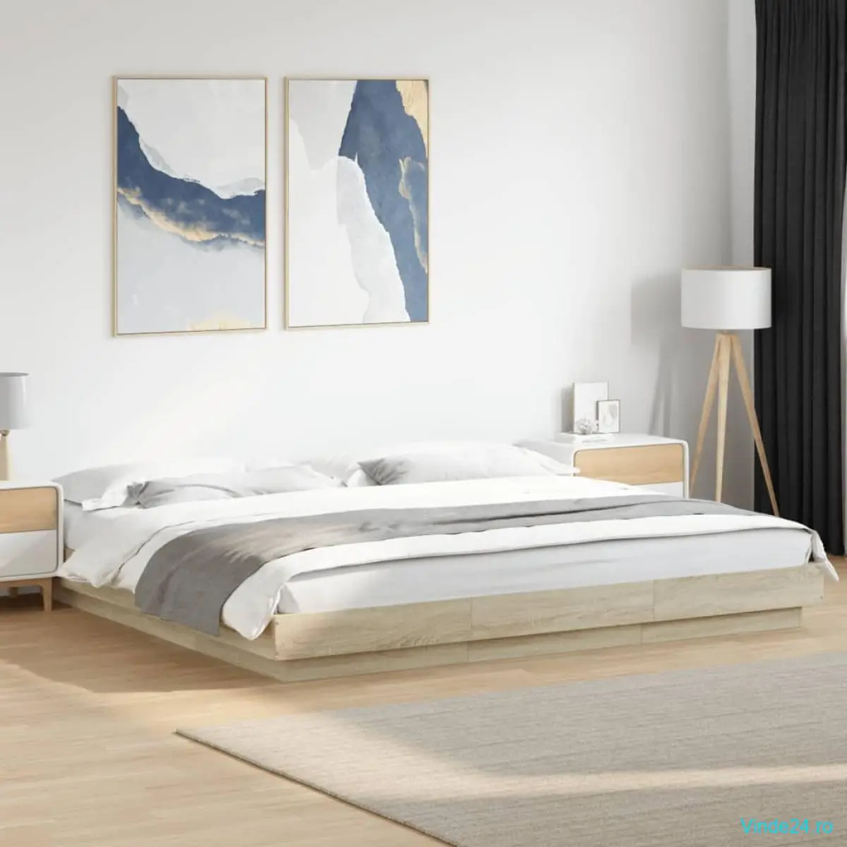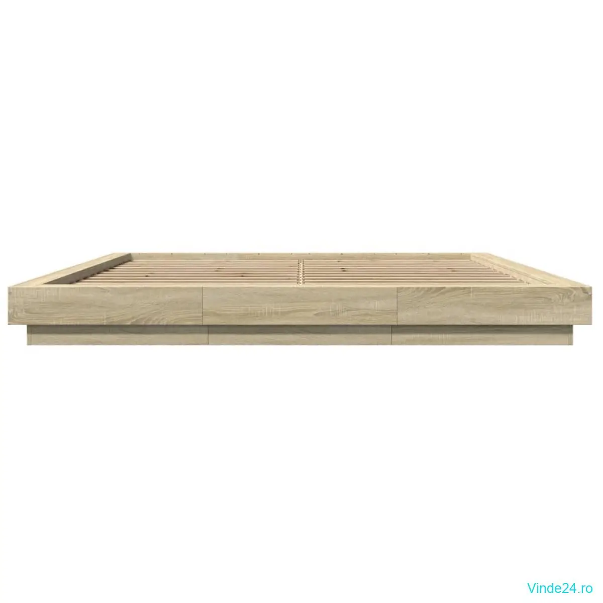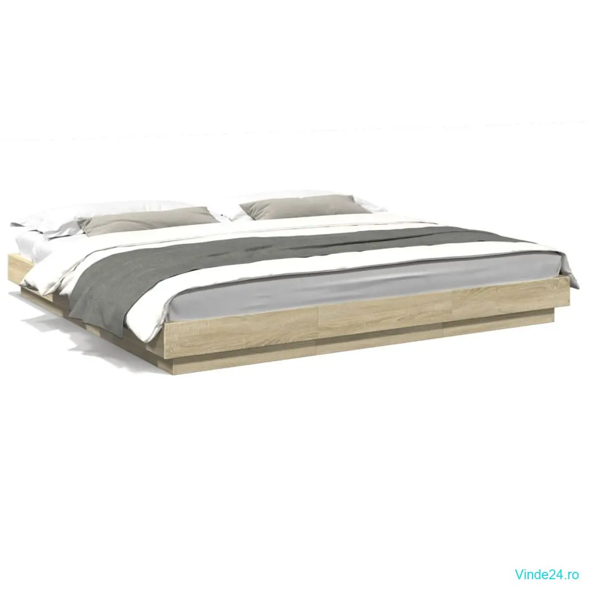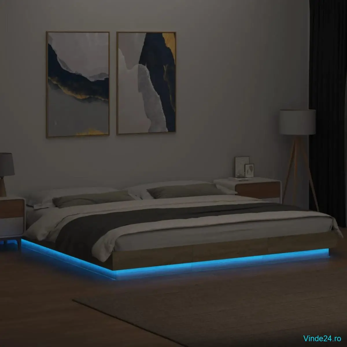 vidaXL Cadru de pat cu LED stejar sonoma 200x200 cm lemn prelucrat