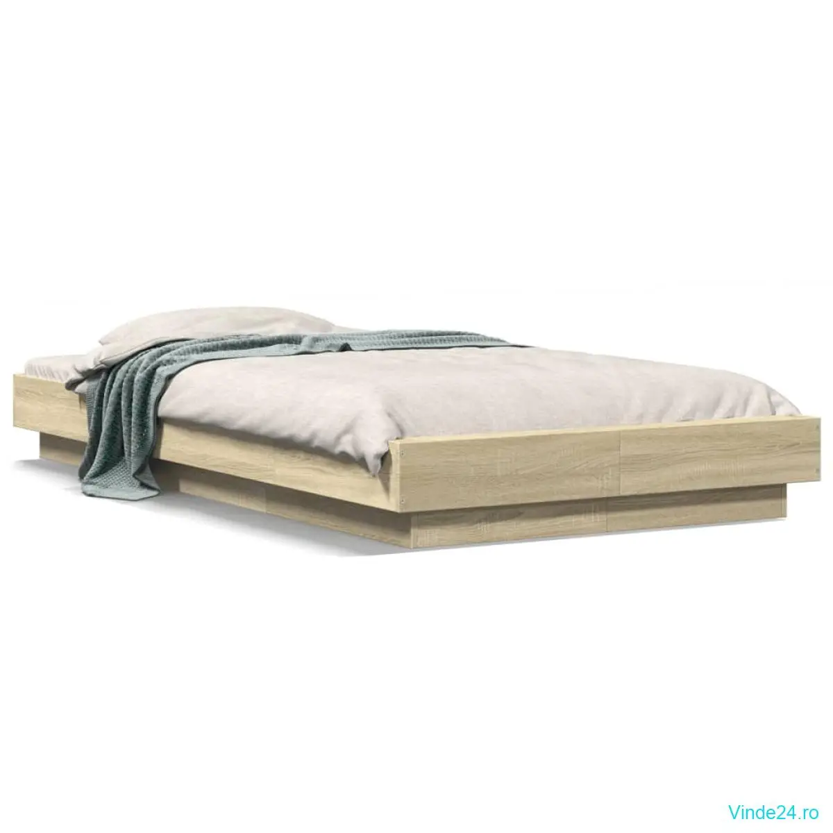 vidaXL Cadru de pat cu LED stejar sonoma 75x190 cm lemn prelucrat