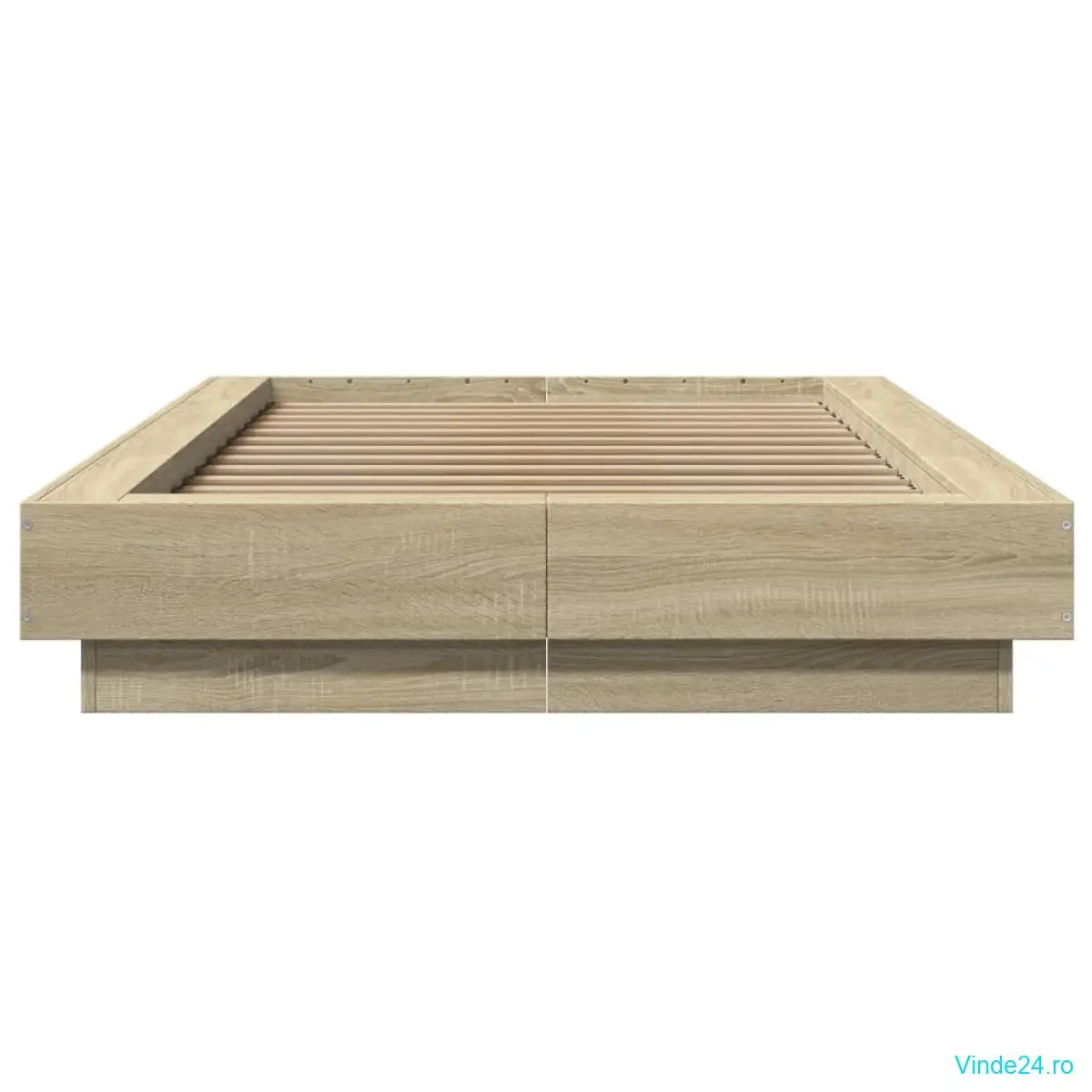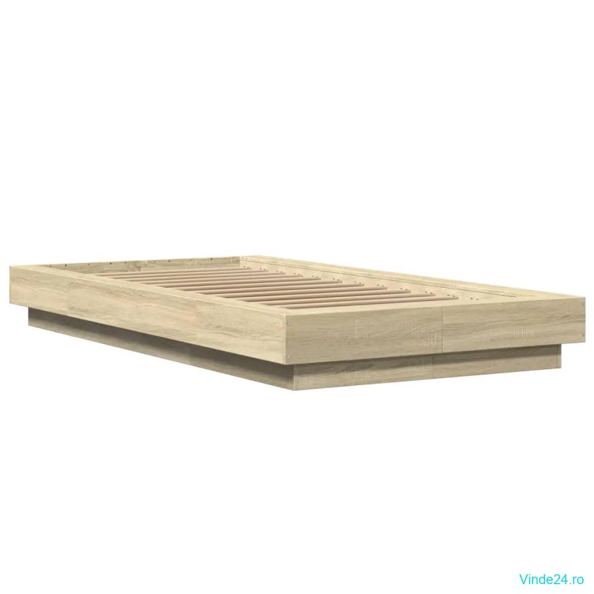 vidaXL Cadru de pat cu LED stejar sonoma 75x190 cm lemn prelucrat