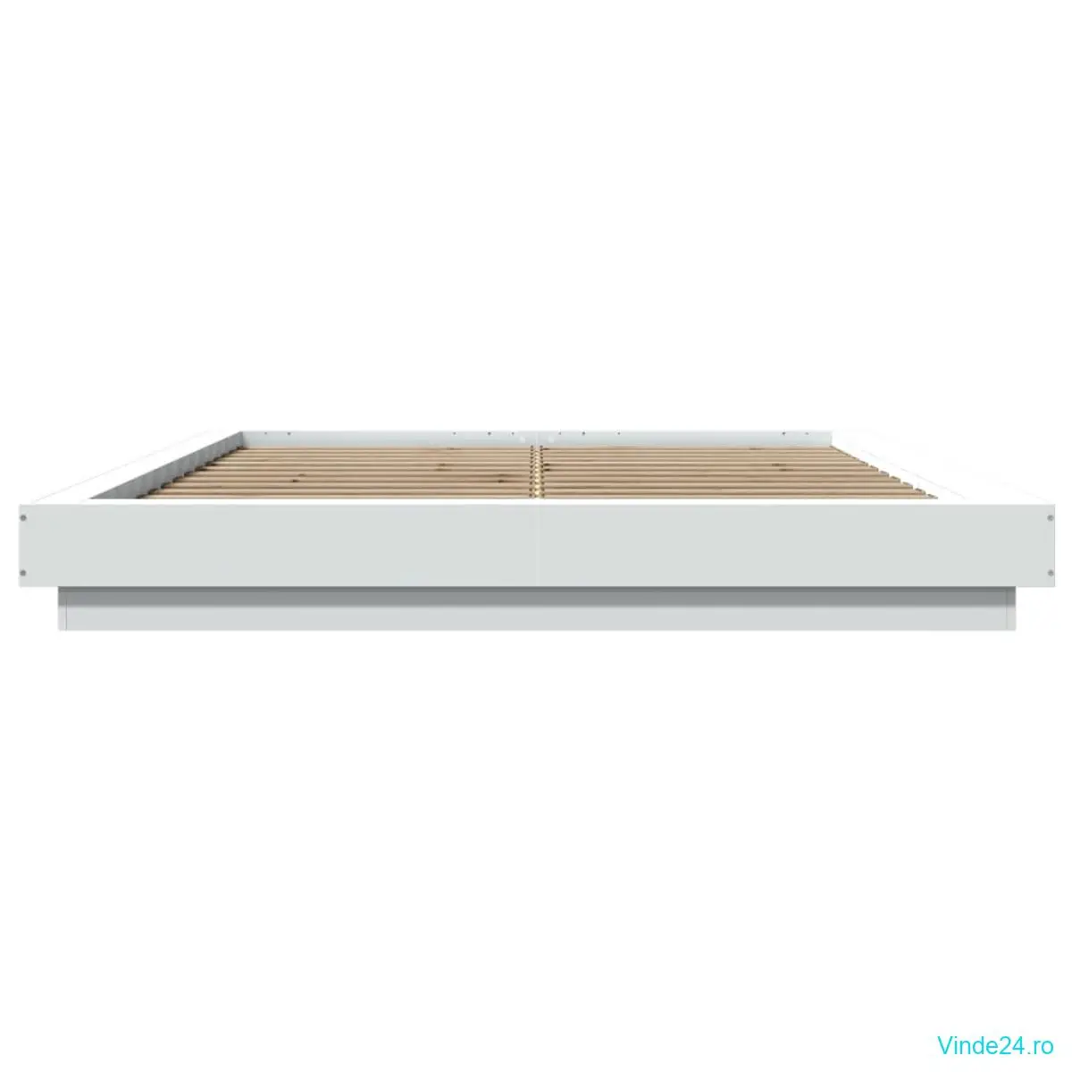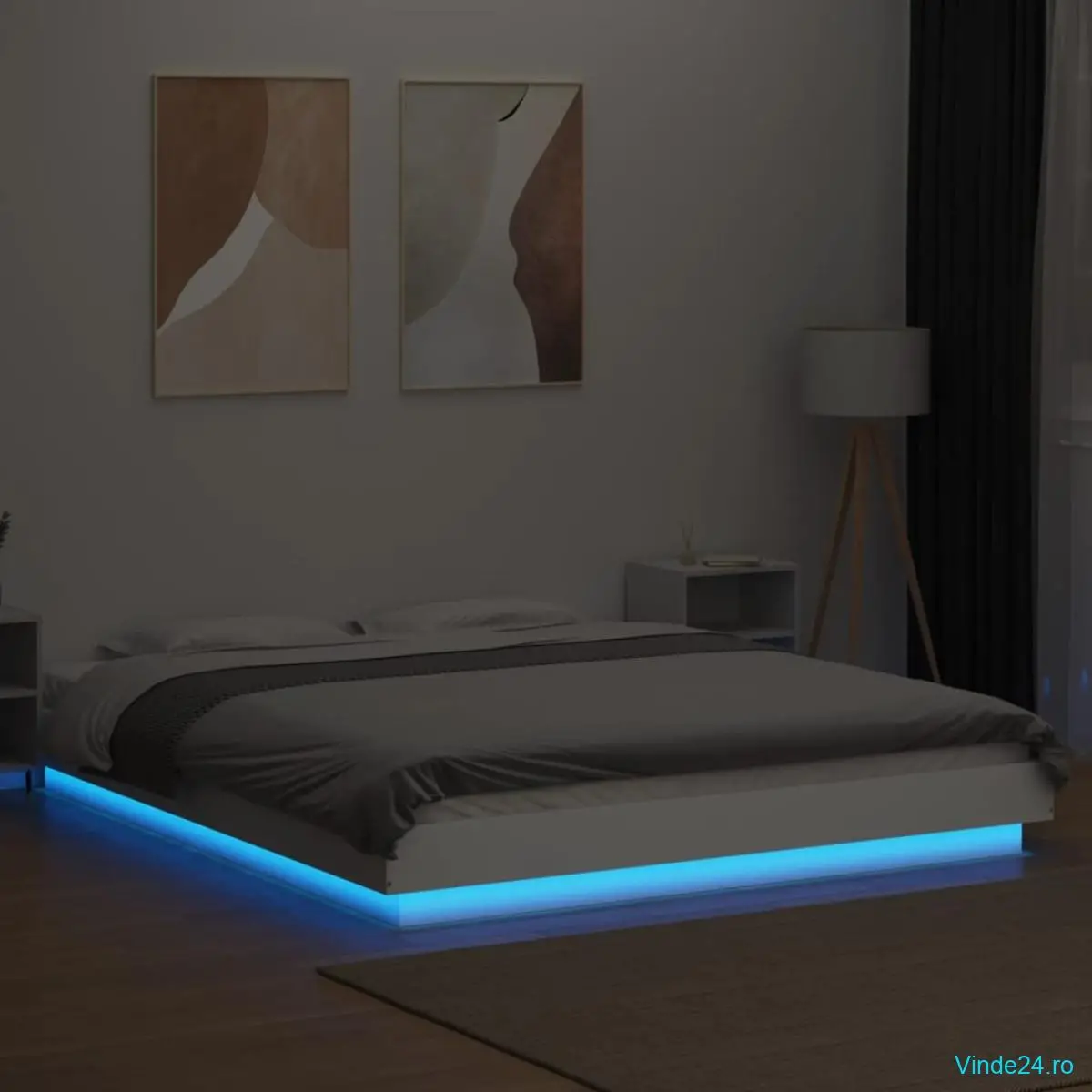 vidaXL Cadru de pat cu lumini LED, alb, 150x200 cm, lemn prelucrat