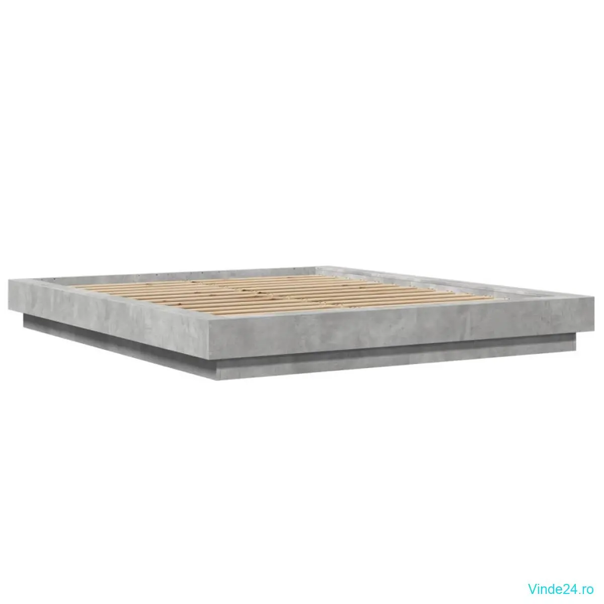 vidaXL Cadru de pat cu lumini LED gri beton 160x200 cm, lemn prelucrat