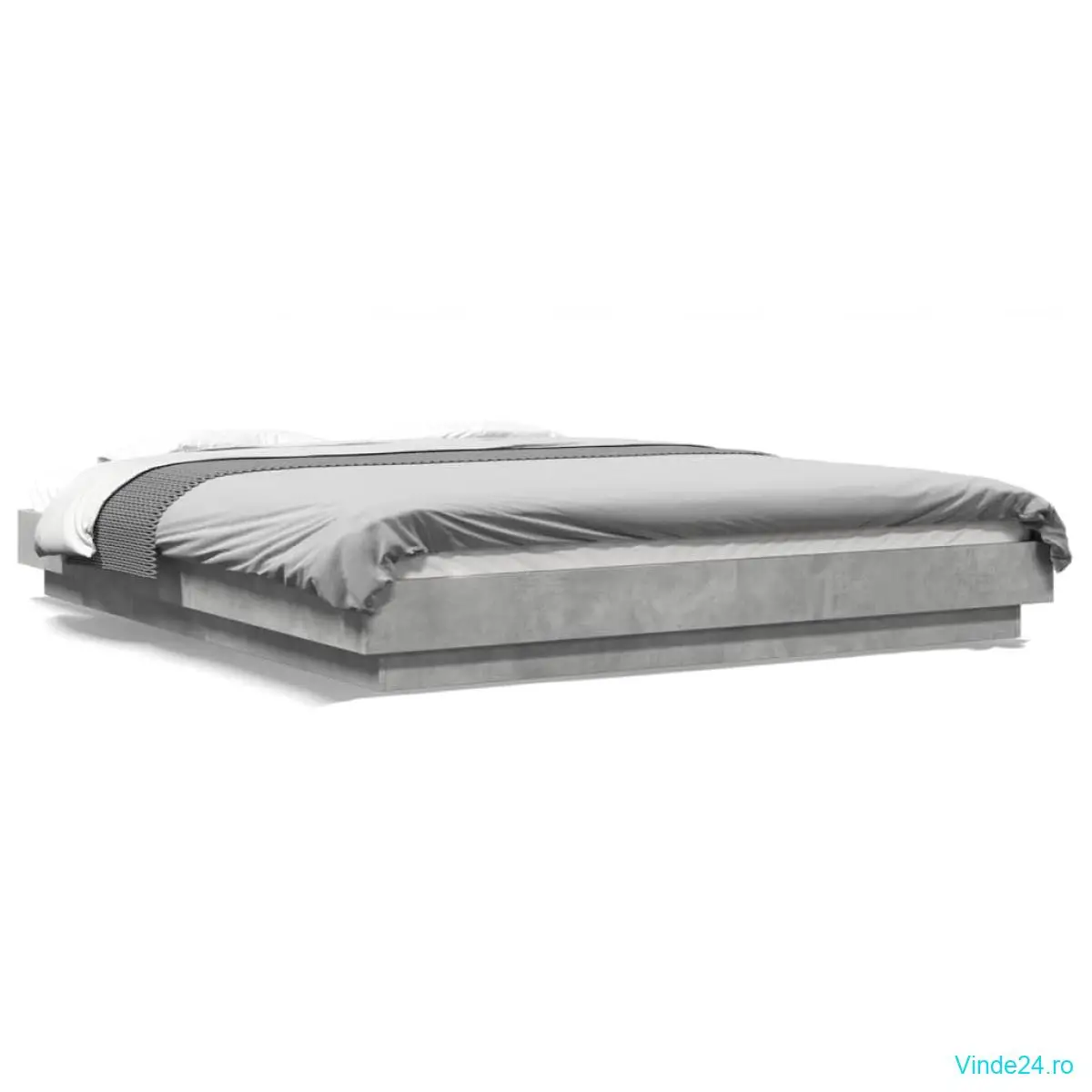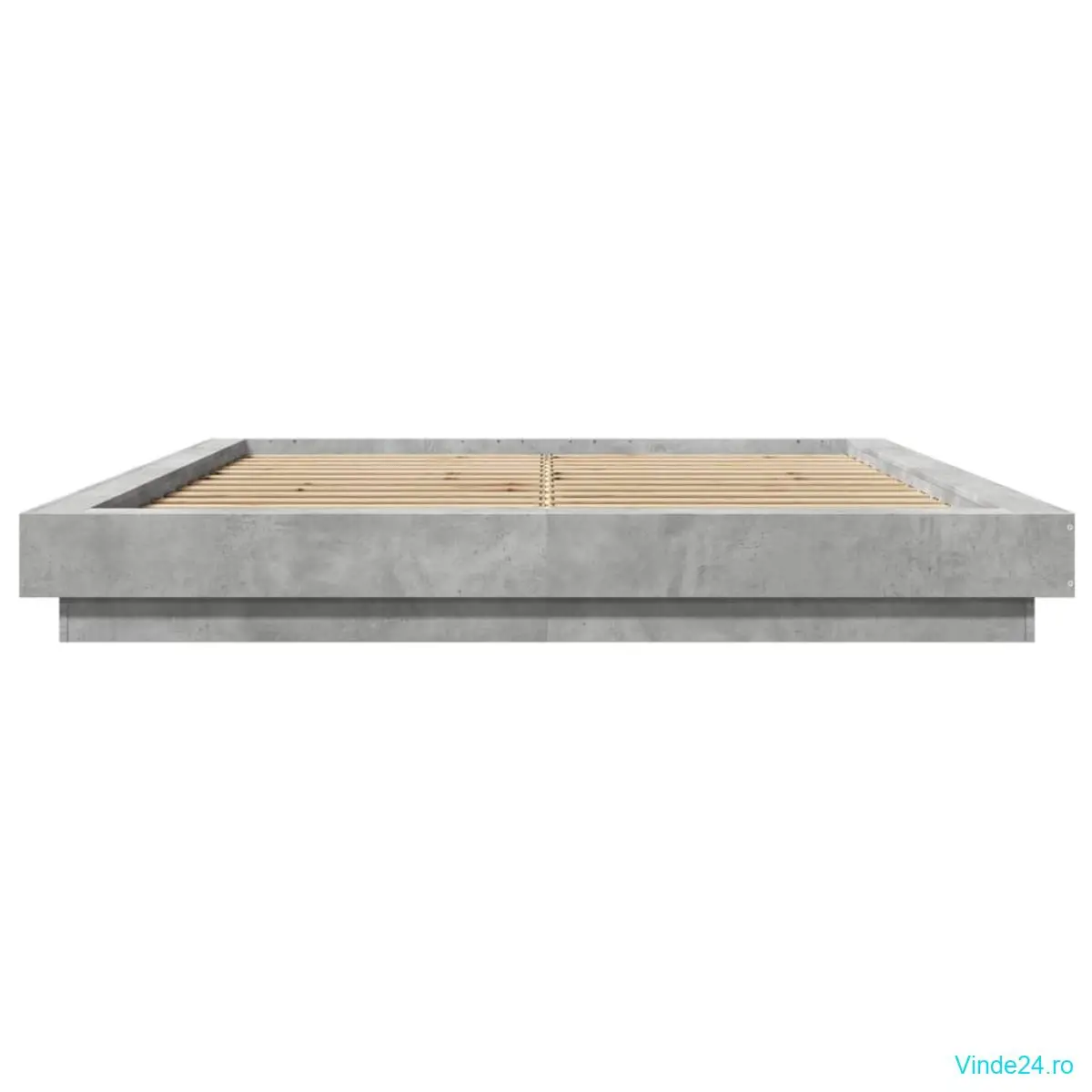 vidaXL Cadru de pat cu lumini LED gri beton 160x200 cm, lemn prelucrat
