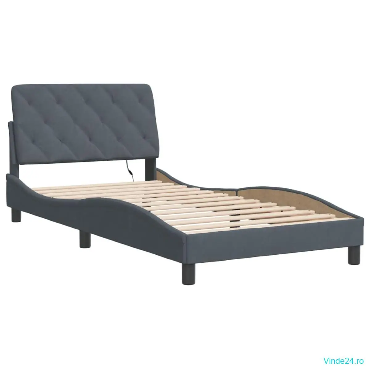vidaXL Cadru de pat cu lumini LED, gri închis, 100x200 cm, catifea