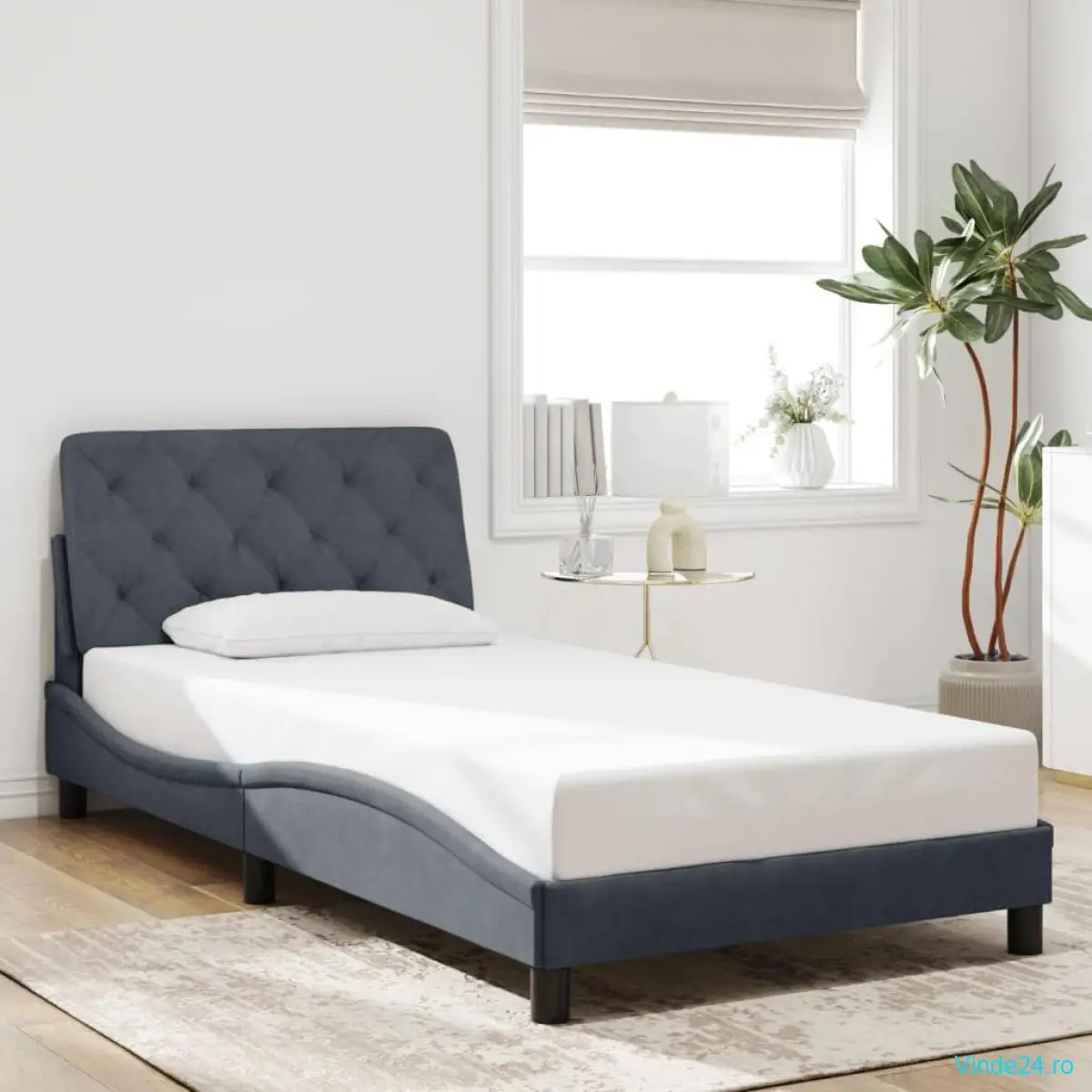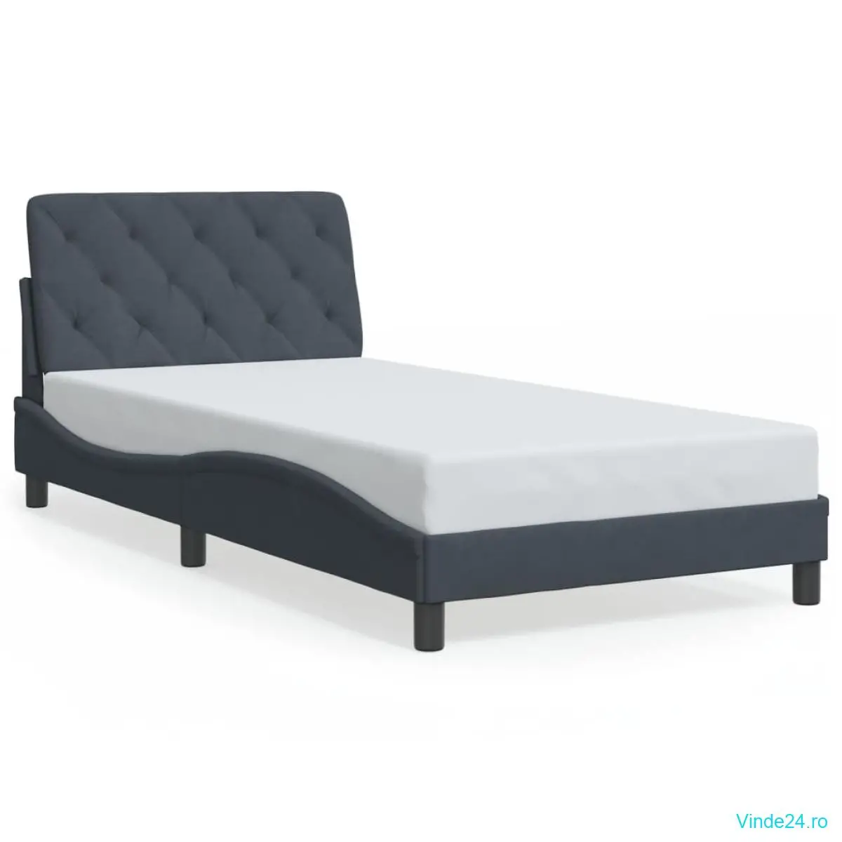 vidaXL Pat box spring cu saltea, gri închis, 90x200 cm, catifea