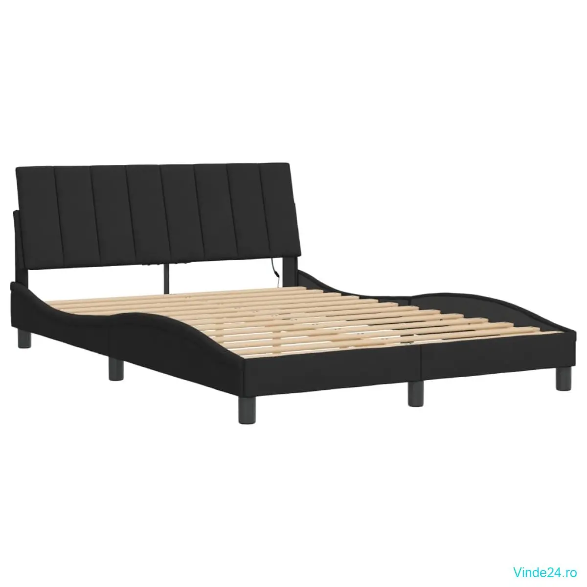vidaXL Cadru de pat cu lumini LED, negru, 140x190 cm, catifea
