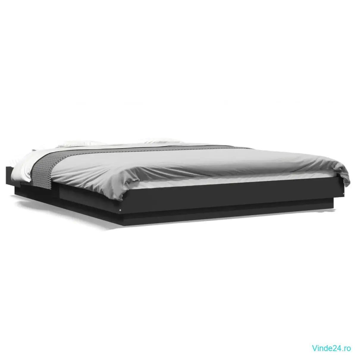 vidaXL Cadru de pat cu lumini LED, negru, 160x200 cm, lemn prelucrat