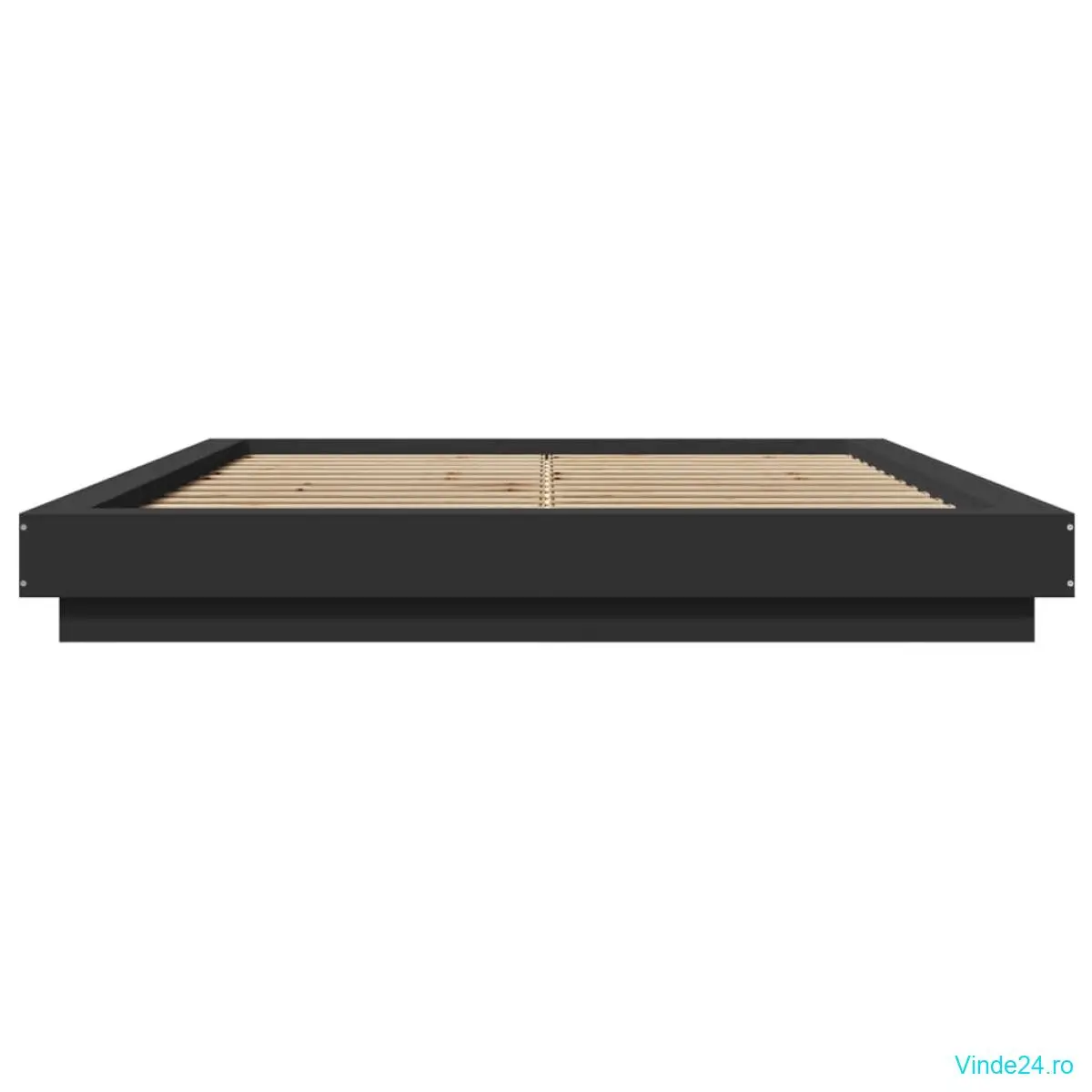 vidaXL Cadru de pat cu lumini LED, negru, 160x200 cm, lemn prelucrat