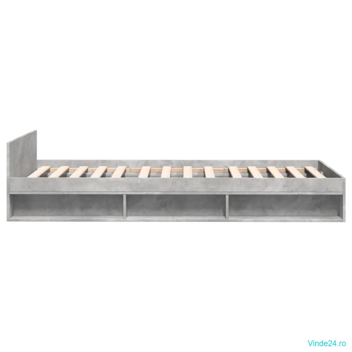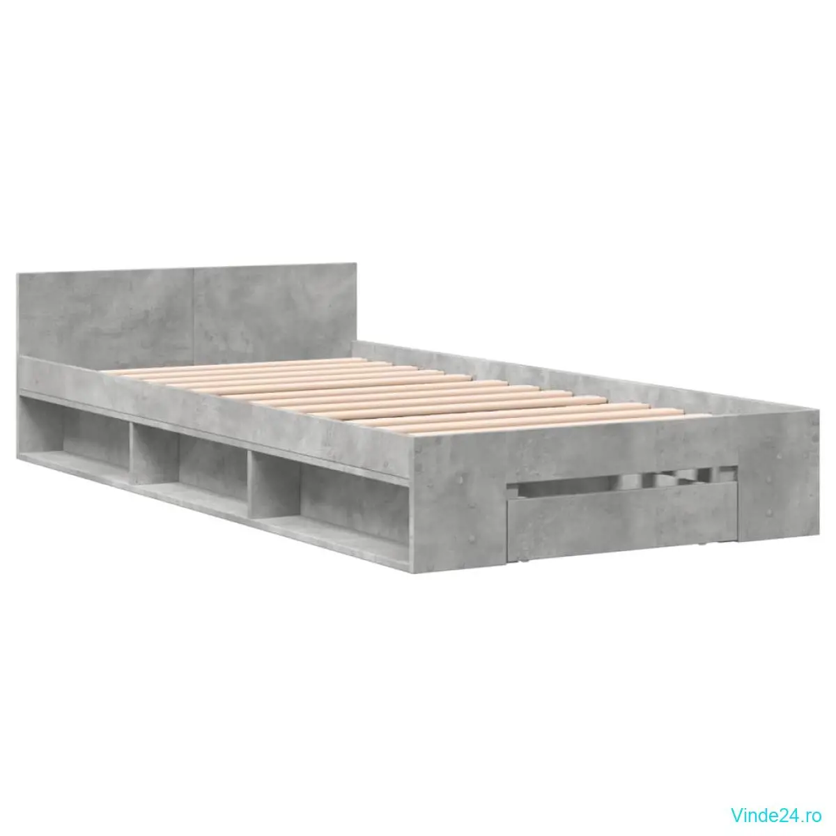 vidaXL Cadru de pat cu sertar, gri beton, 100x200 cm, lemn prelucrat