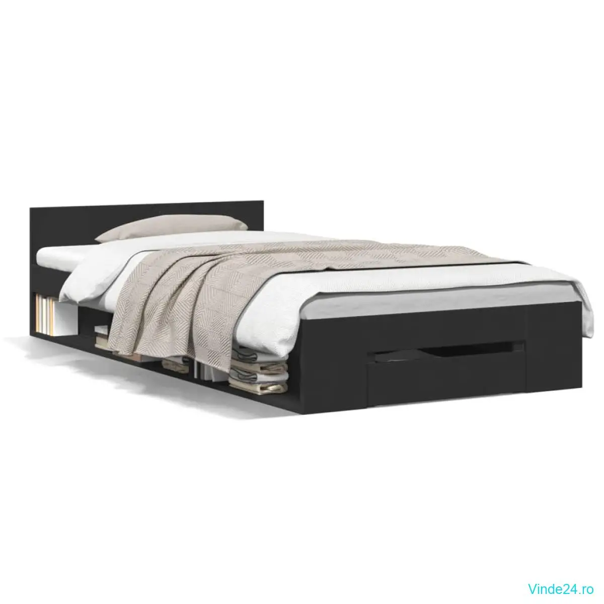 vidaXL Cadru de pat cu sertar, negru, 100x200 cm, lemn prelucrat