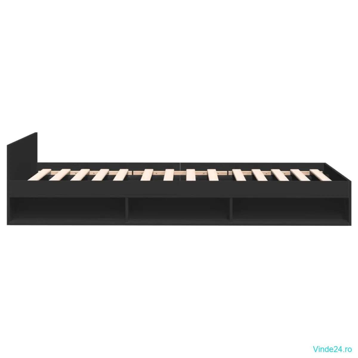 vidaXL Cadru de pat, negru, 120x190 cm, lemn prelucrat și metal
