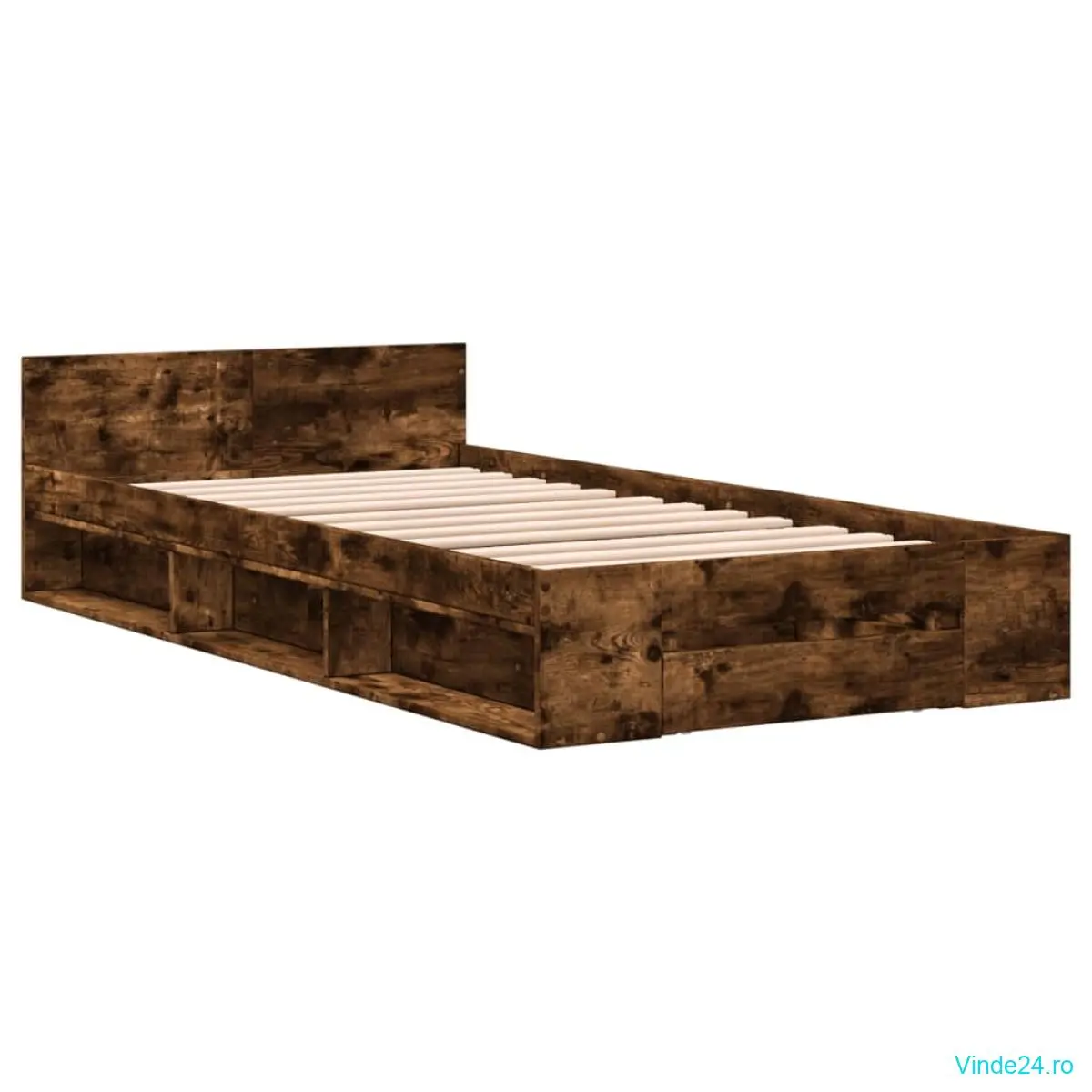 vidaXL Cadru de pat cu sertar stejar fumuriu 75x190 cm lemn prelucrat