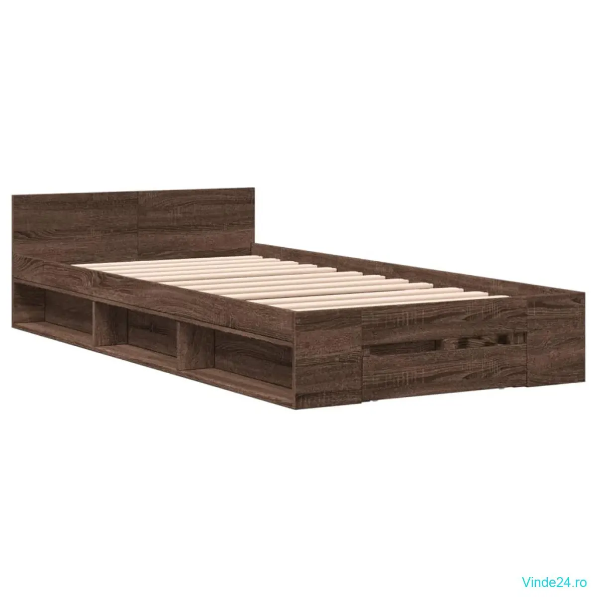 vidaXL Cadru de pat cu sertar, stejar maro, 90x200 cm lemn prelucrat