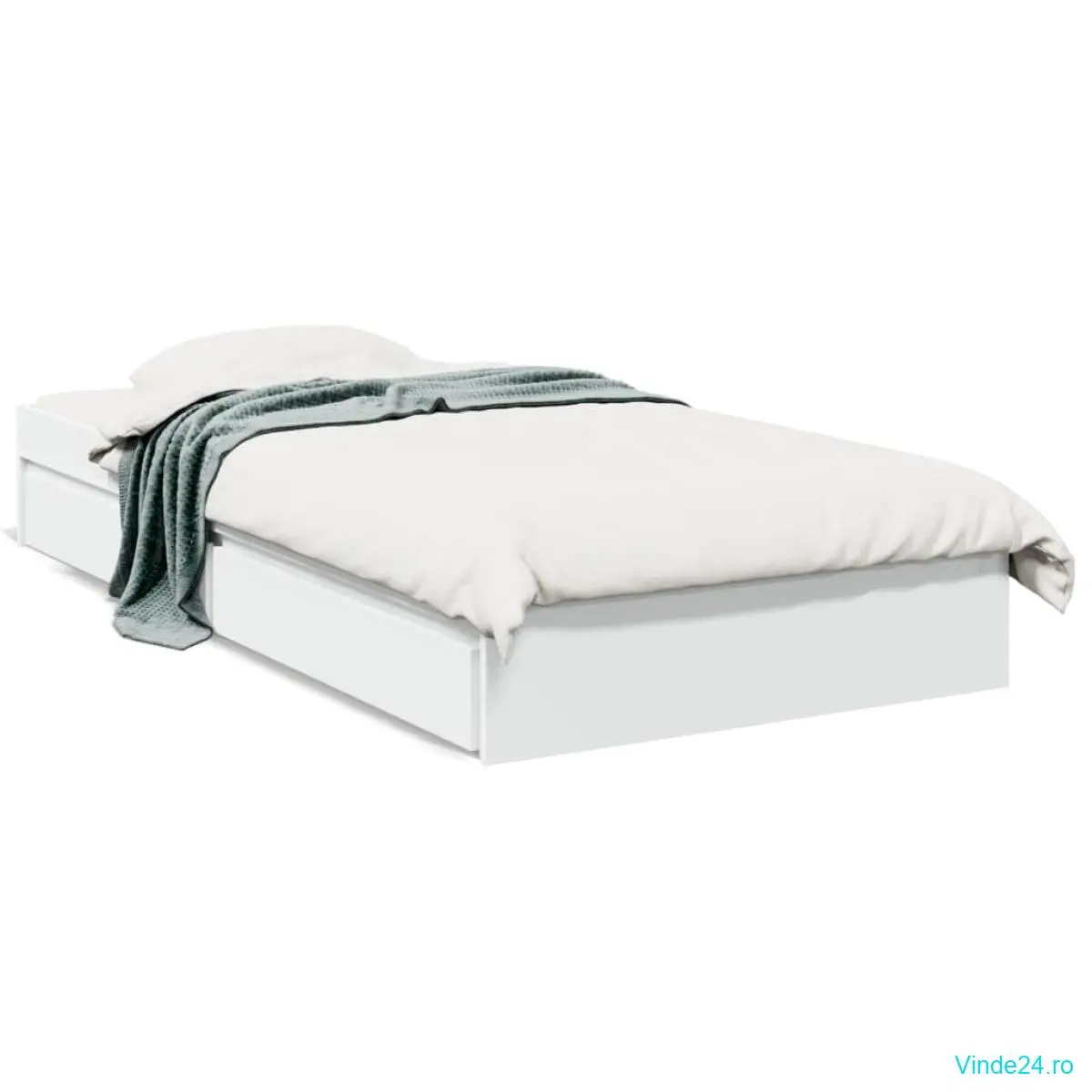 vidaXL Cadru de pat cu sertare, alb, 75x190 cm, lemn prelucrat