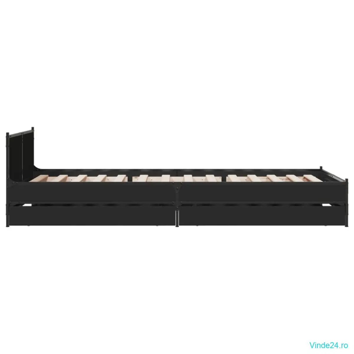 vidaXL Cadru de pat cu sertare, negru, 100x200 cm, lemn prelucrat