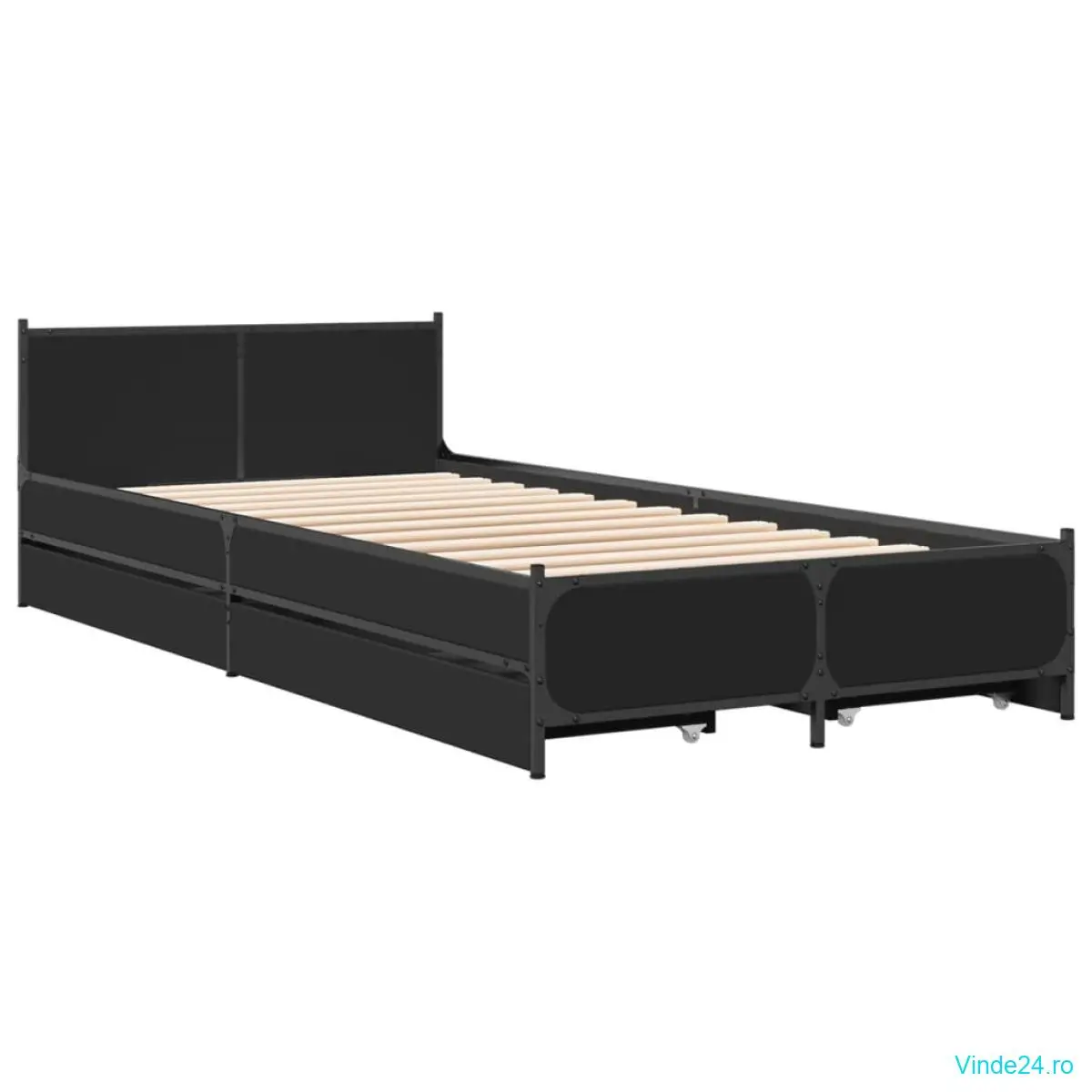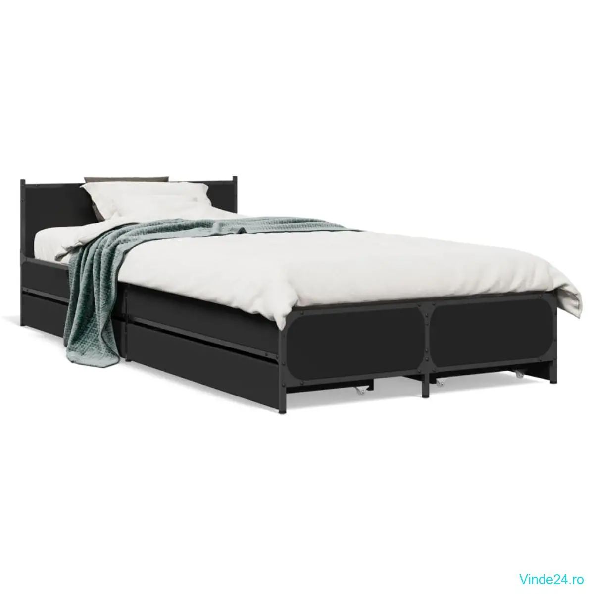 vidaXL Cadru de pat cu sertare, negru, 100x200 cm, lemn prelucrat