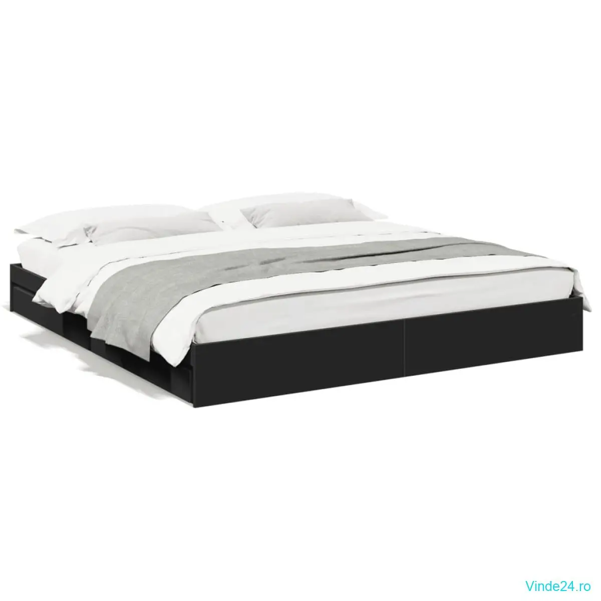 vidaXL Cadru de pat cu sertare, negru, 180x200 cm, lemn prelucrat