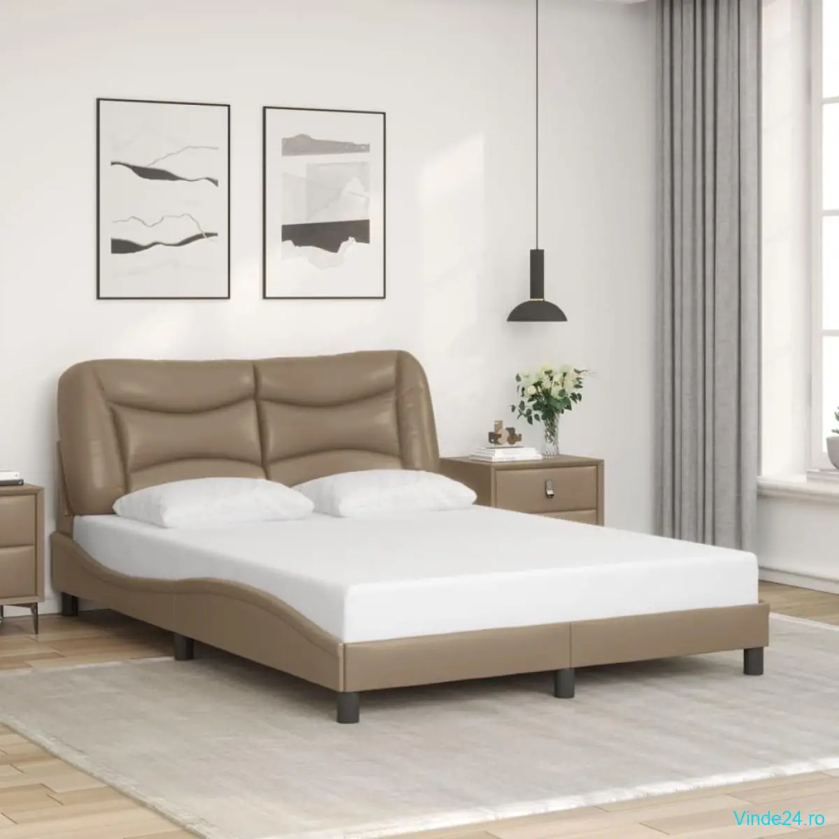 vidaXL Cadru de pat cu tăblie, cappuccino, 140x190 cm, piele ecologică