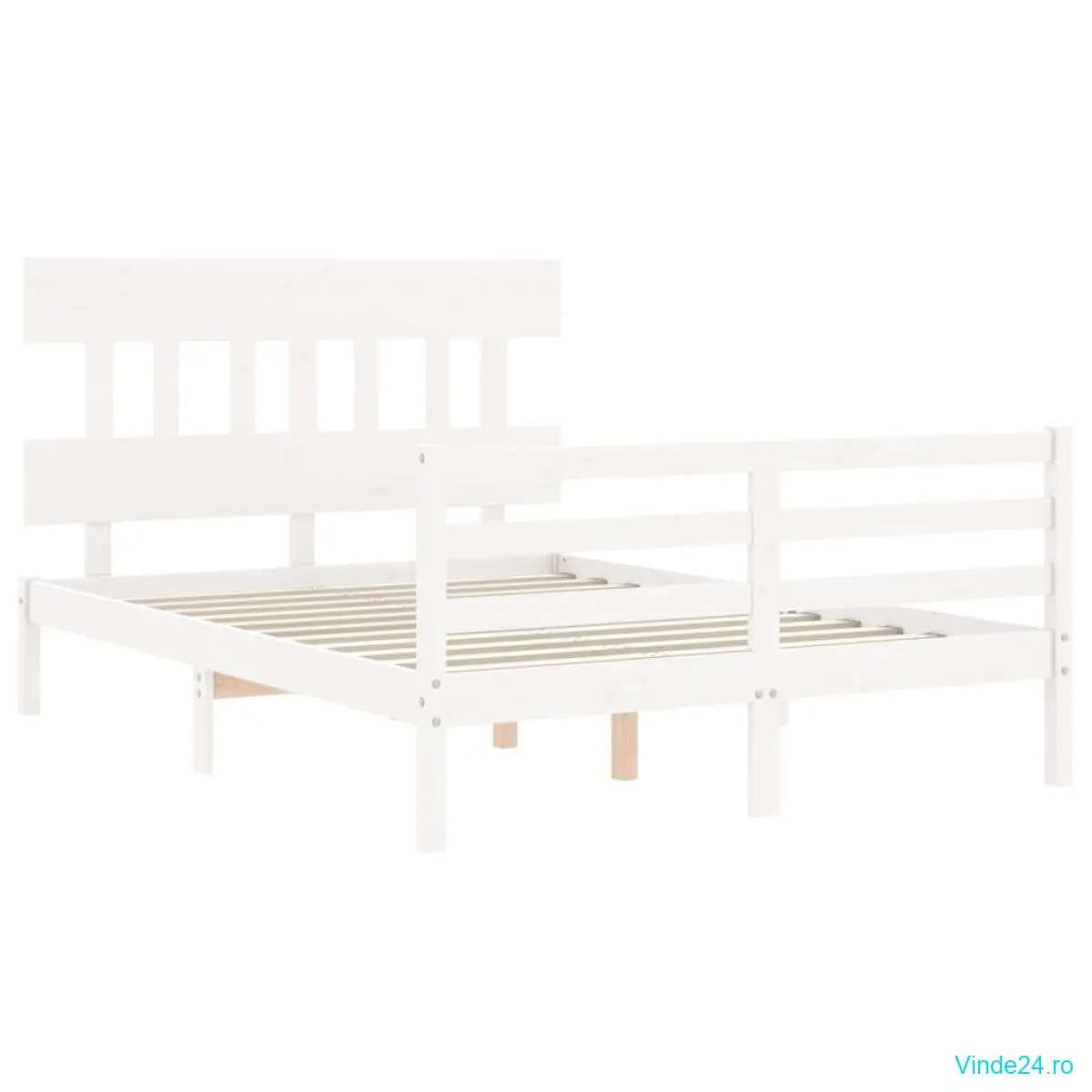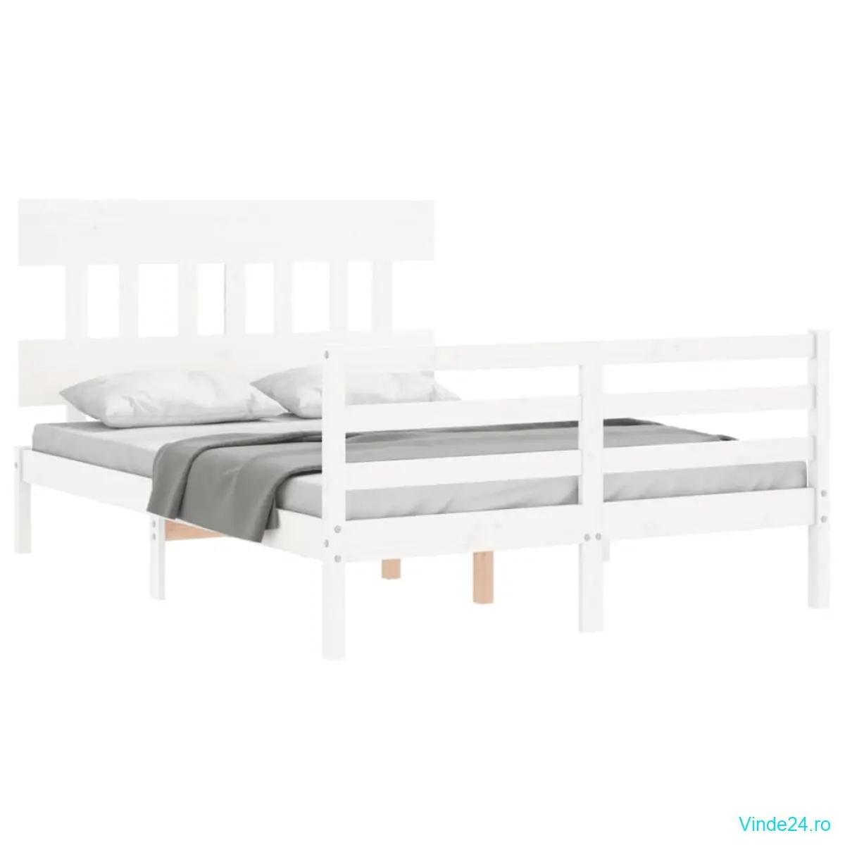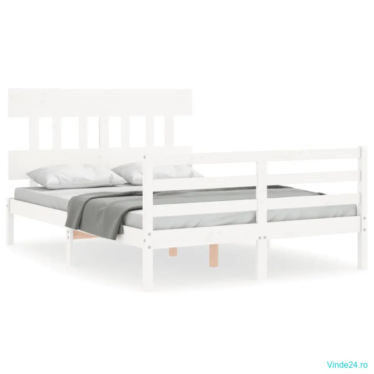 vidaXL Cadru de pat cu tăblie dublu mic, lemn masiv