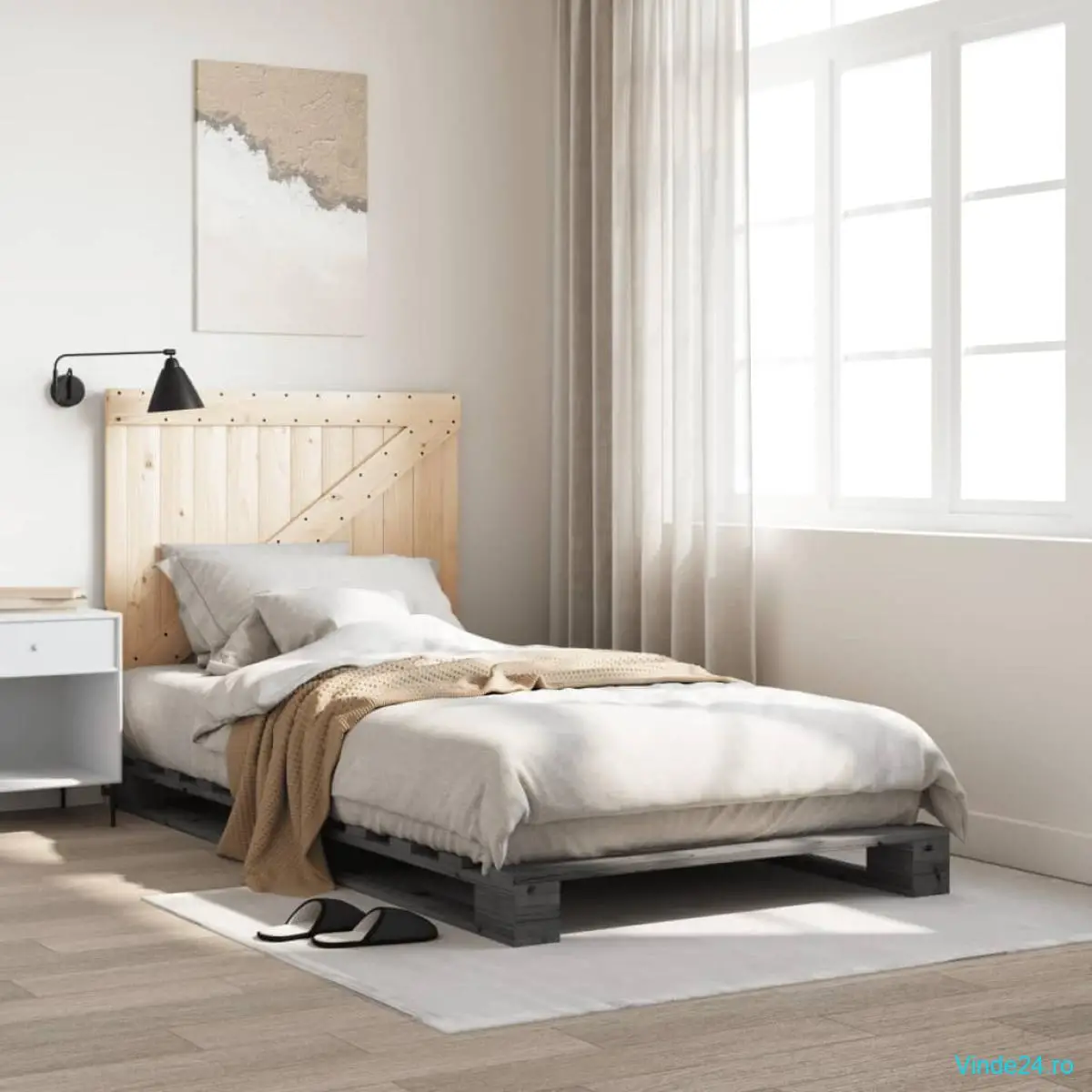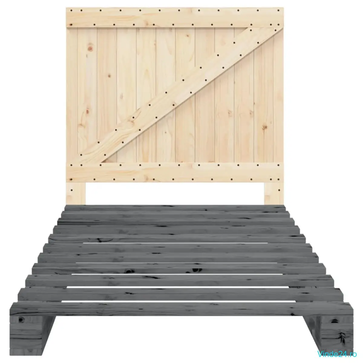 vidaXL Cadru de pat cu tăblie, gri, 100x200 cm, lemn masiv de pin