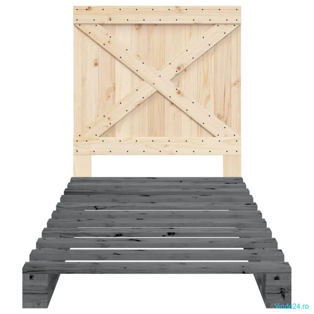 vidaXL Cadru de pat cu tăblie, gri, 90x200 cm, lemn masiv de pin