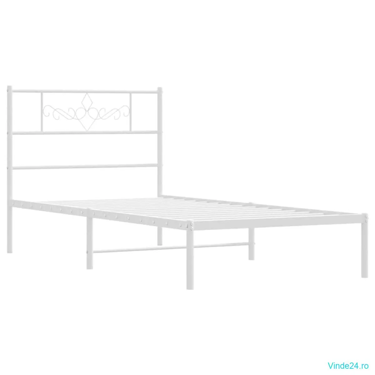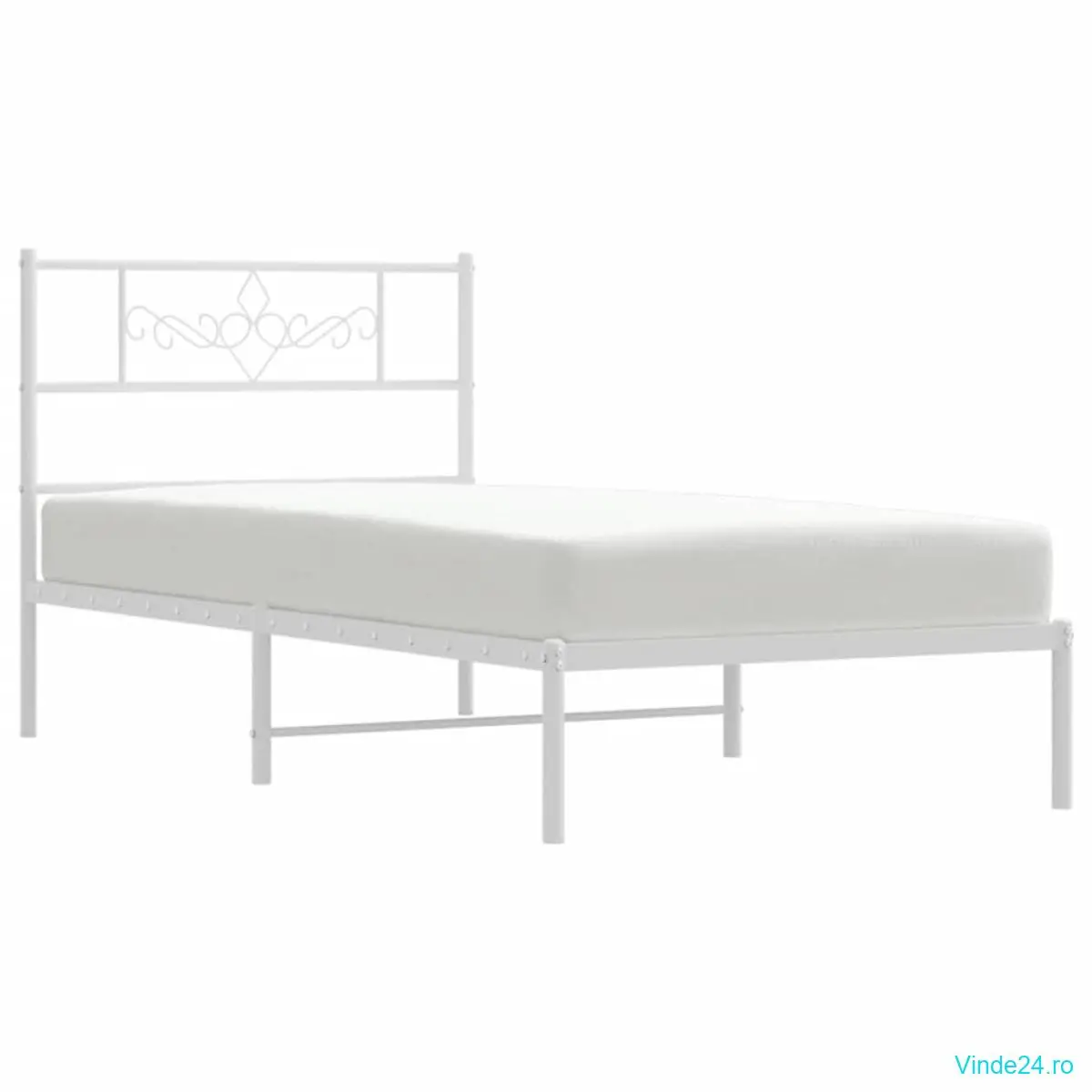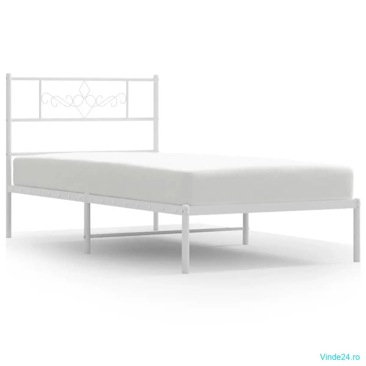 vidaXL Cadru de pat din metal cu tăblie, alb, 100x200 cm