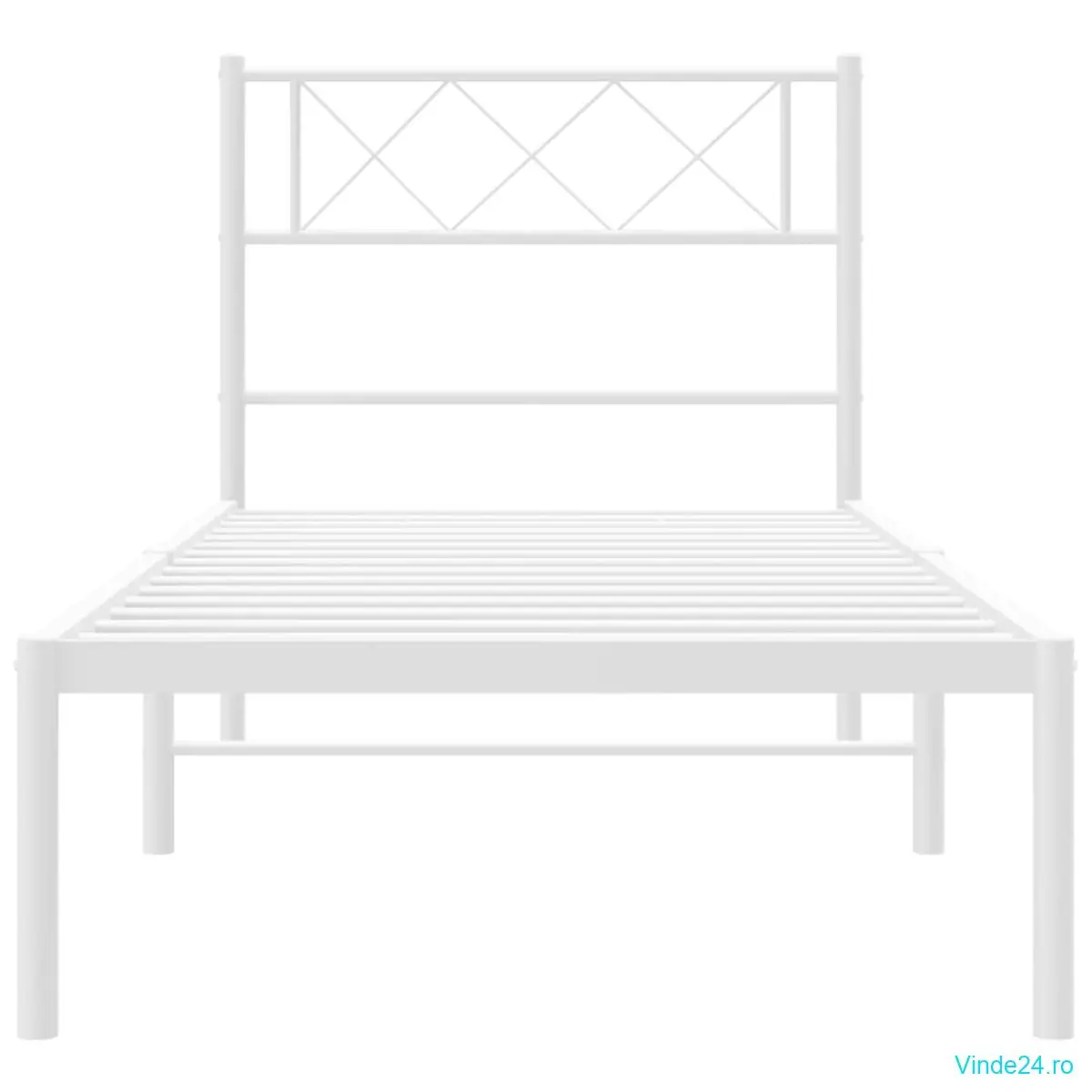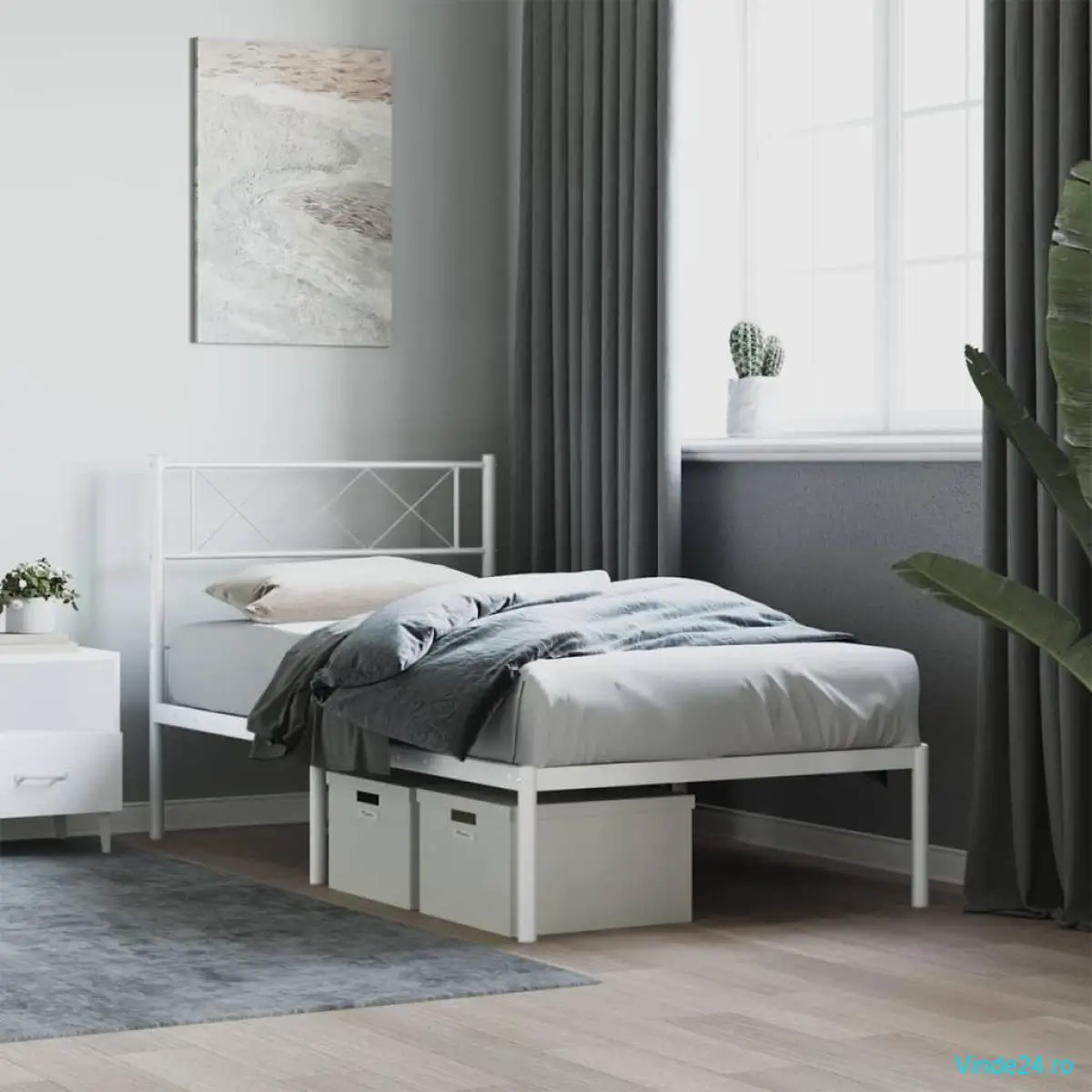 vidaXL Cadru de pat din metal cu tăblie, alb, 107x203 cm