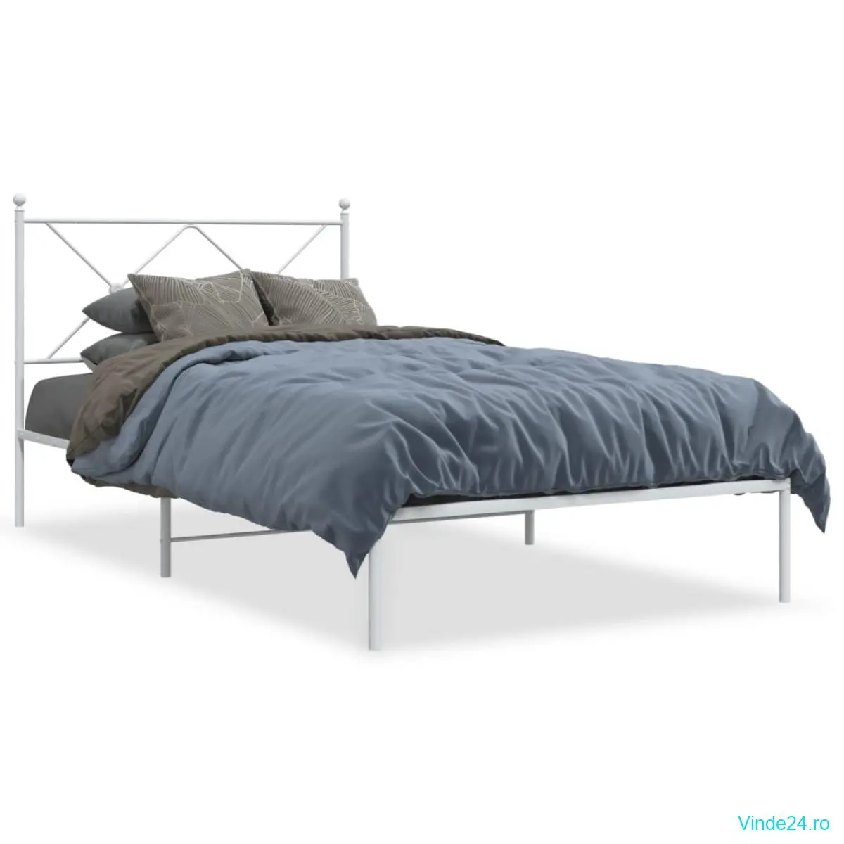 vidaXL Cadru de pat din metal cu tăblie, alb, 107x203 cm