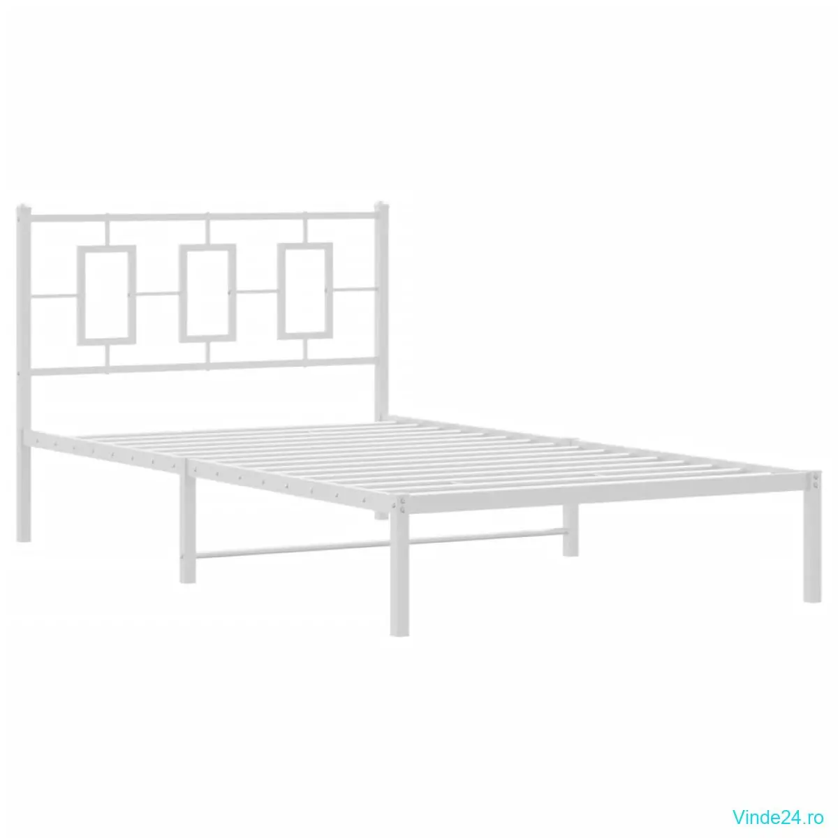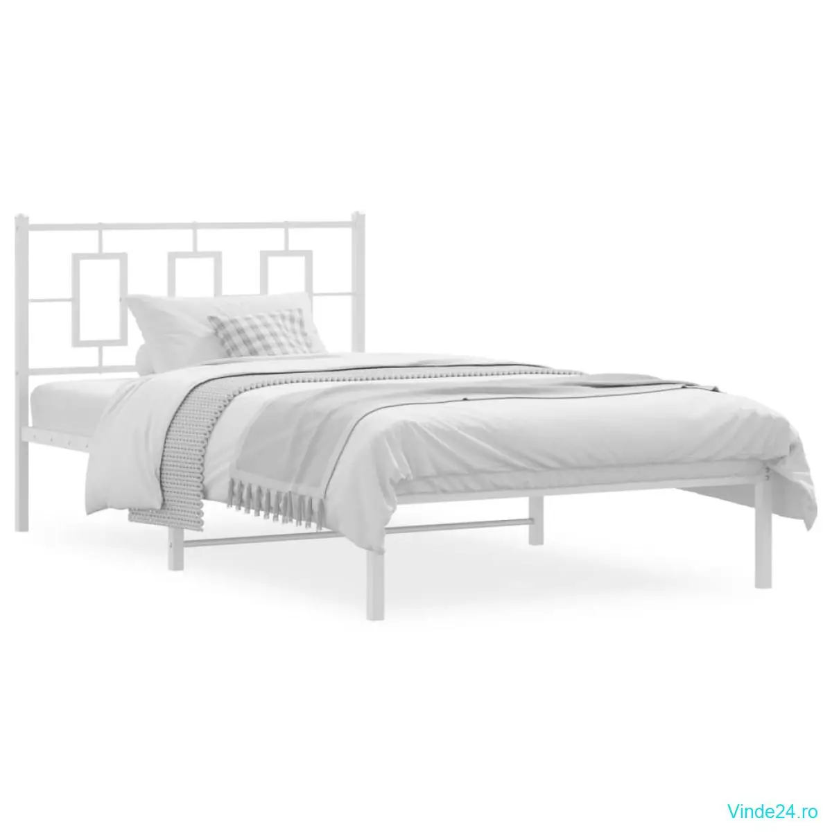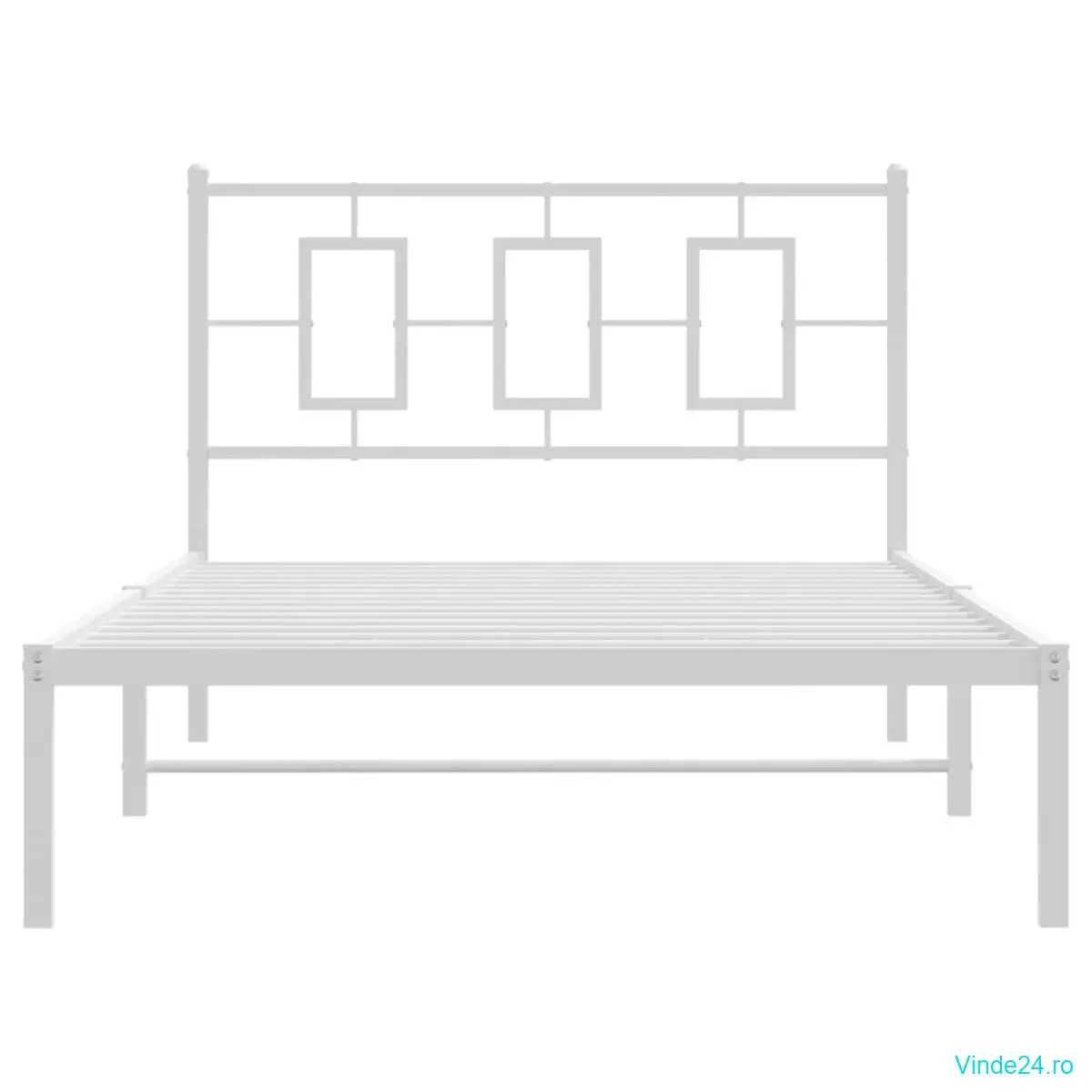 vidaXL Cadru de pat din metal cu tăblie, alb, 107x203 cm