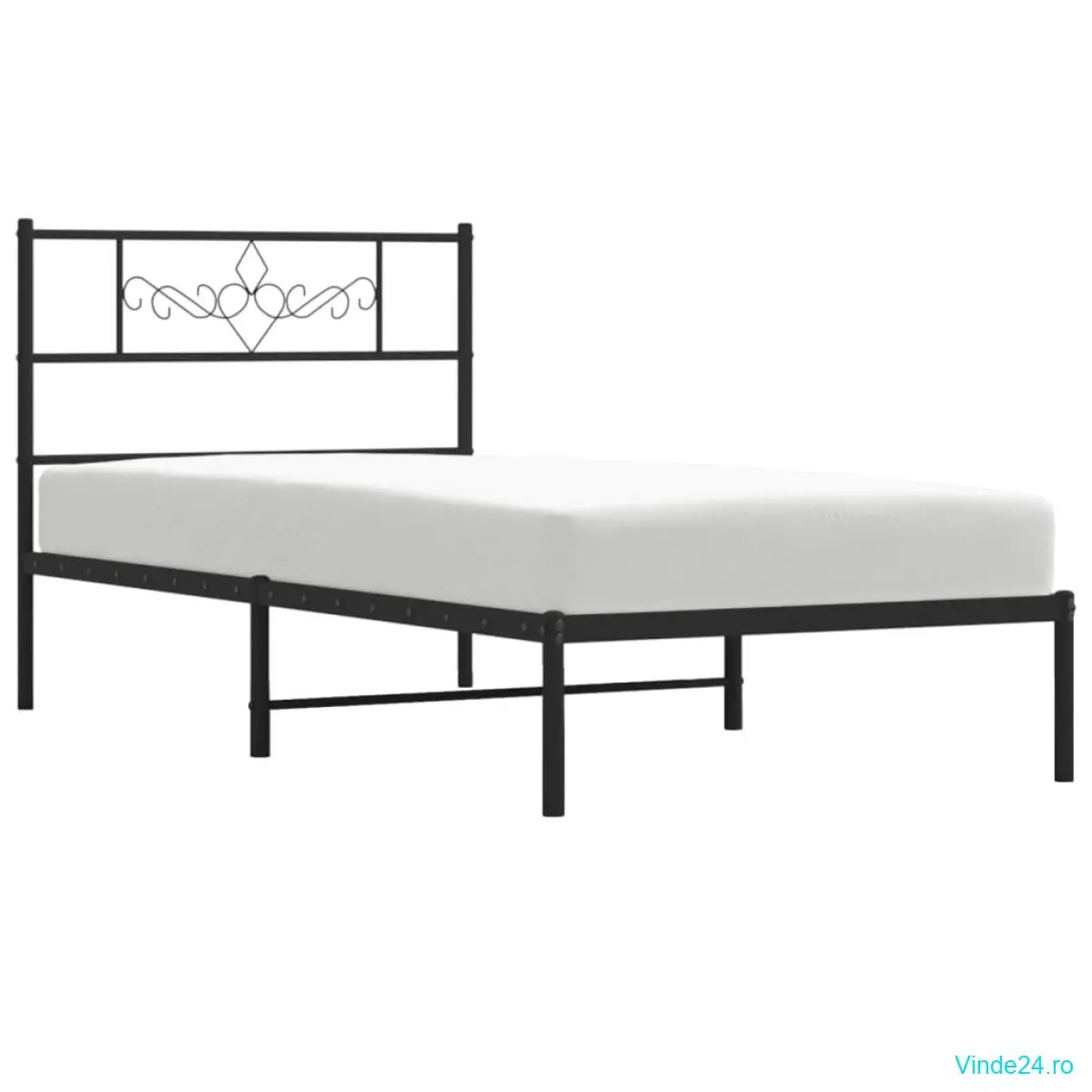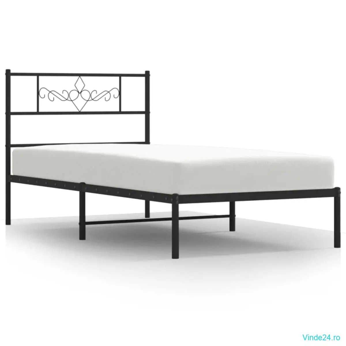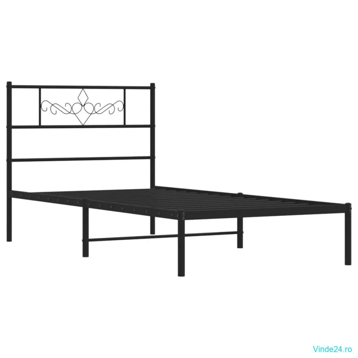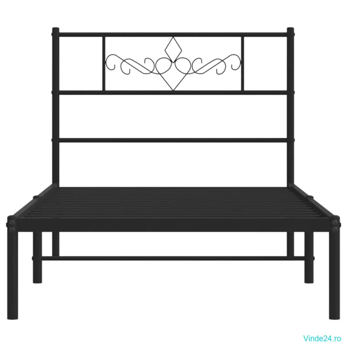 vidaXL Cadru de pat din metal cu tăblie, negru, 107x203 cm