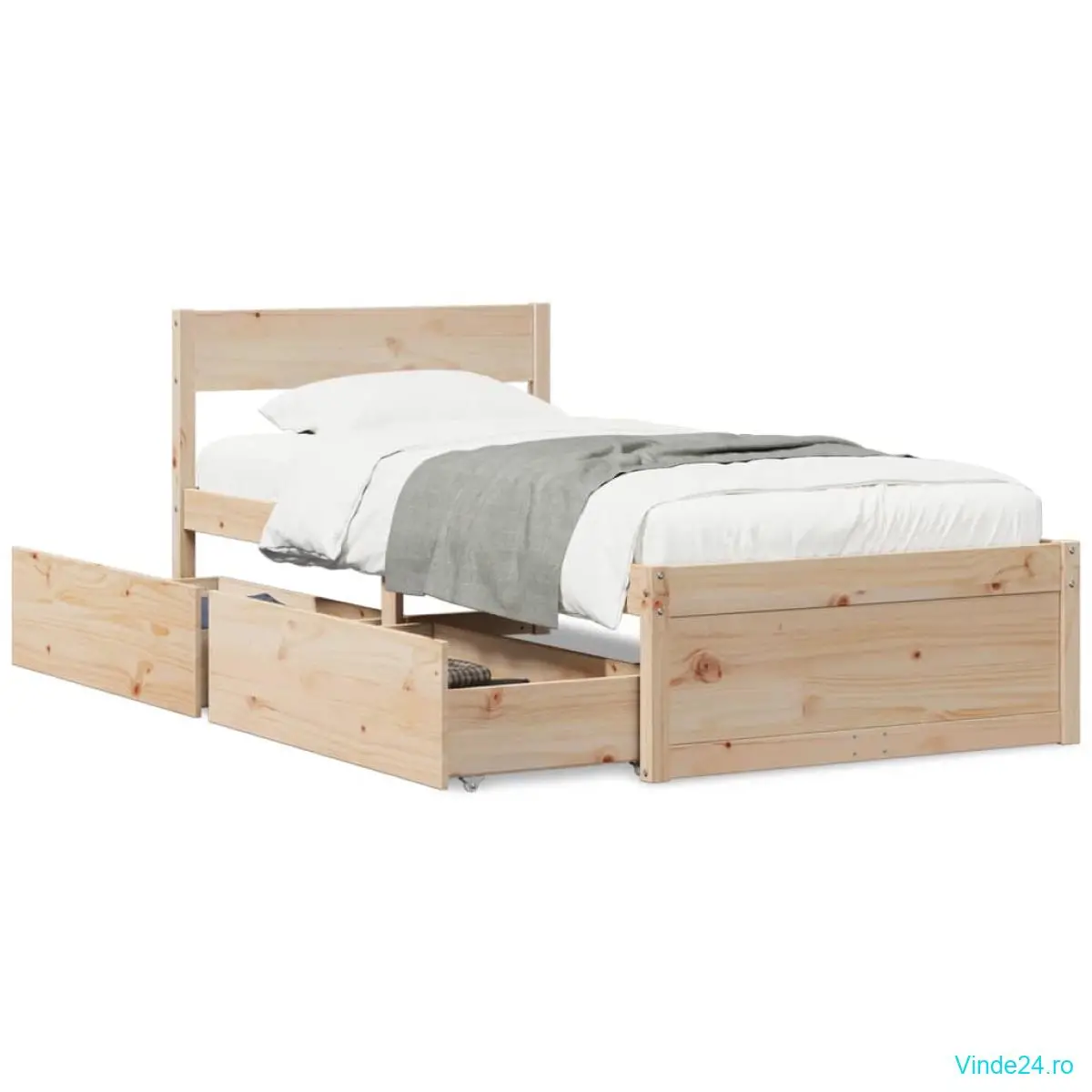 vidaXL Cadru de pat fără saltea, 75x190 cm, lemn masiv de pin