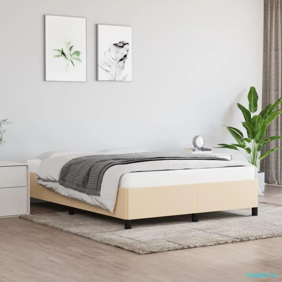 vidaXL Cadru de pat fără saltea, crem, 140x200 cm, textil