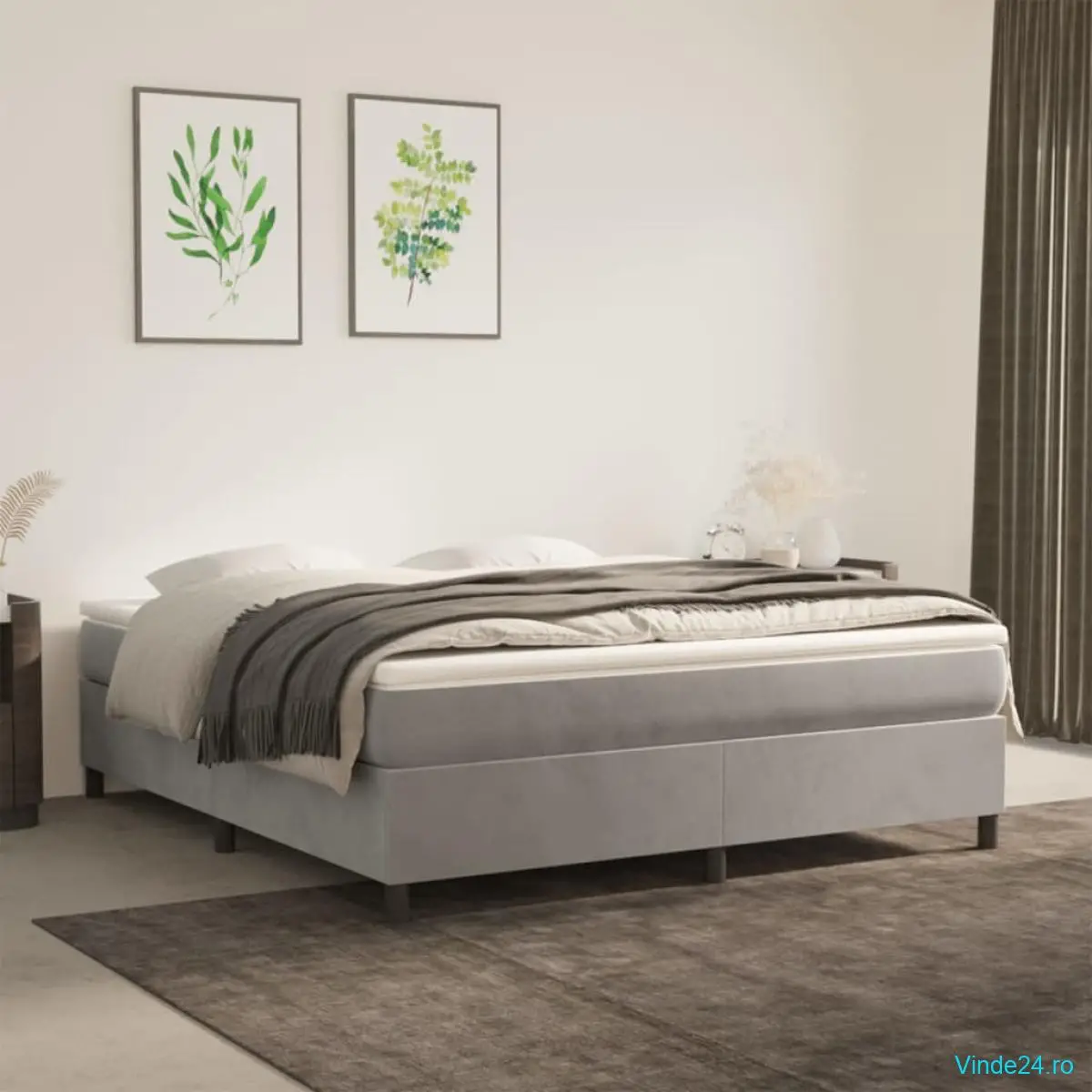 vidaXL Cadru de pat fără saltea, gri deschis, 160x200 cm, catifea