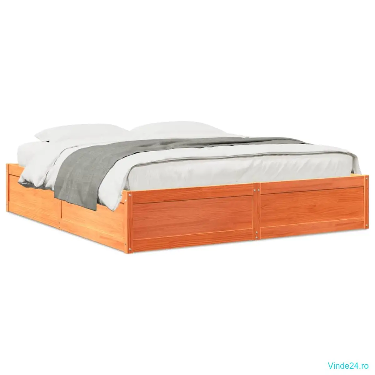vidaXL Pat cu sertare saltea, maro ceruit, 180x200 cm, lemn masiv pin