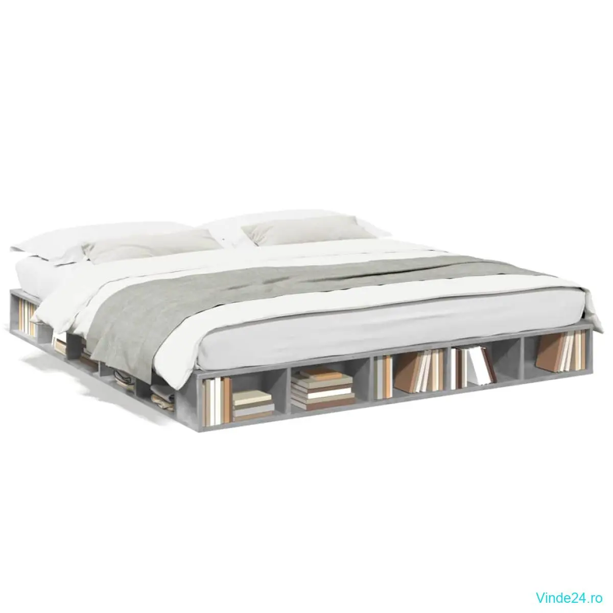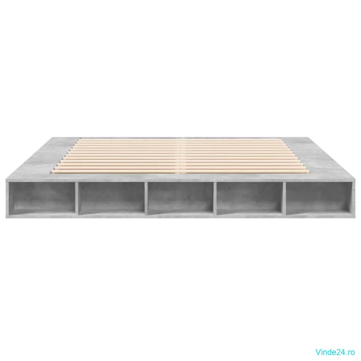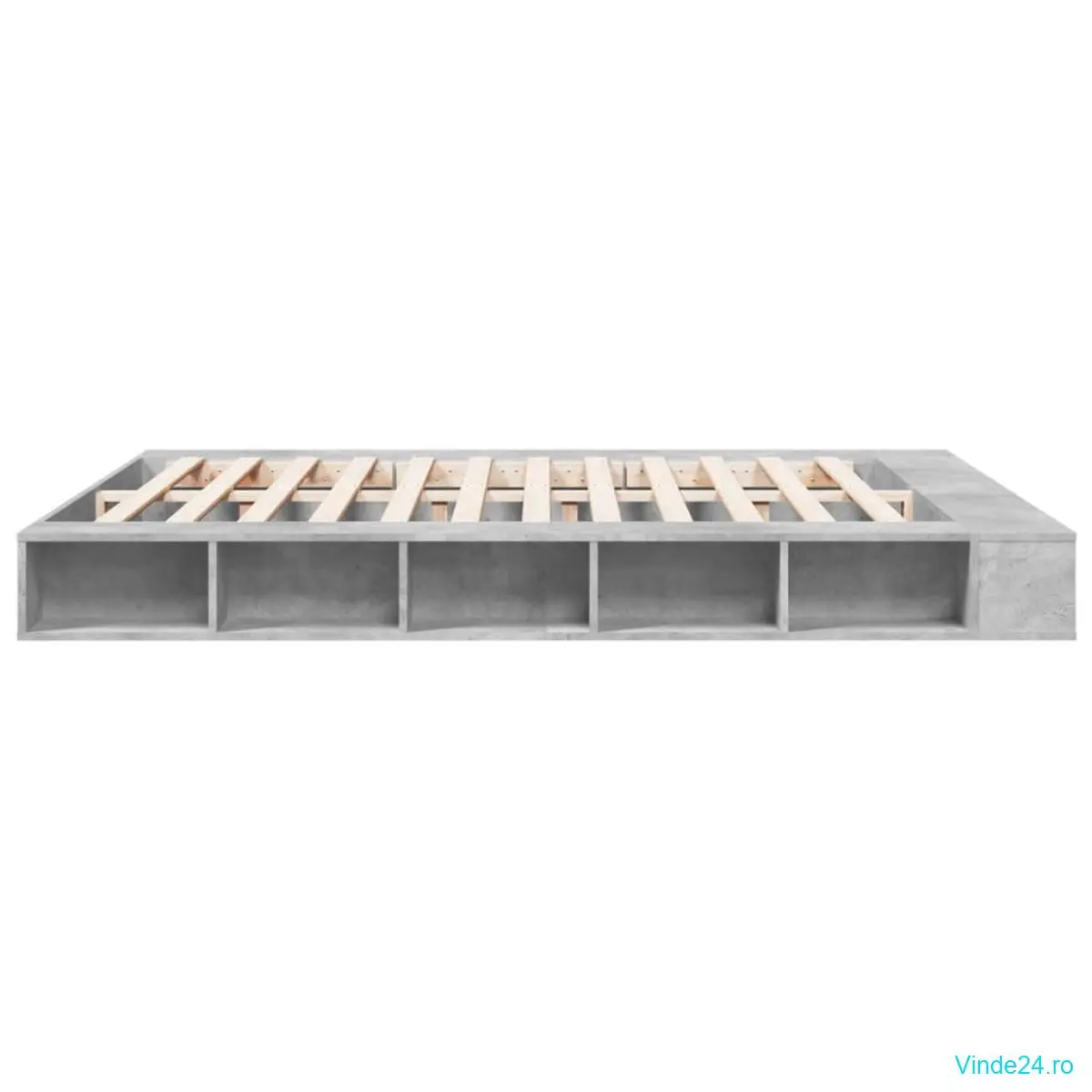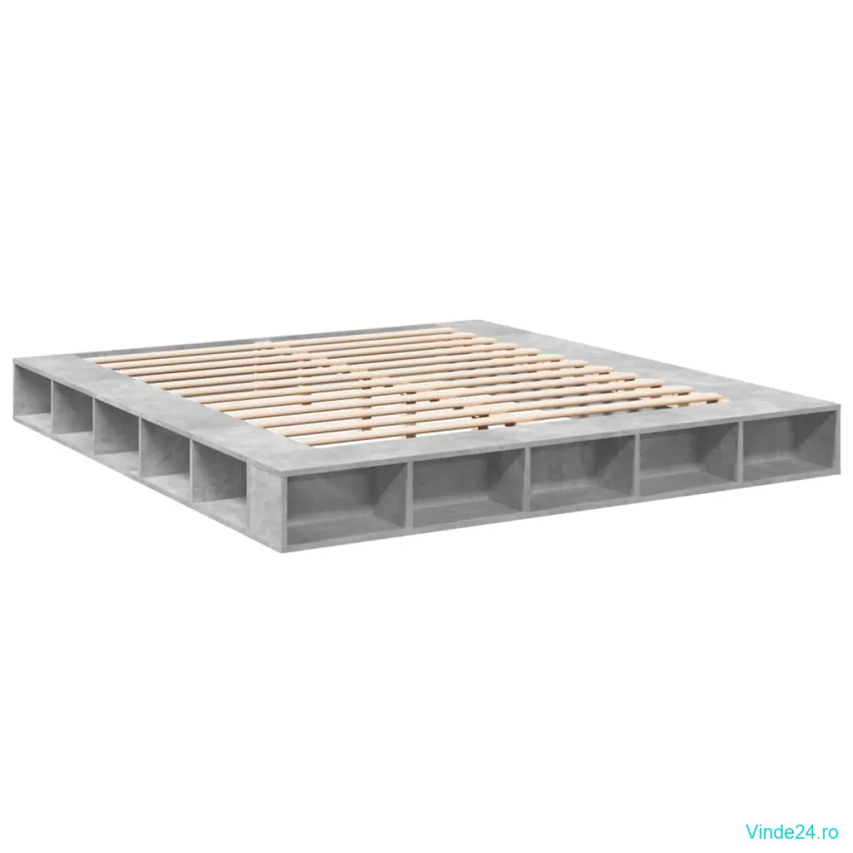 vidaXL Cadru de pat, gri beton, 180x200 cm, lemn prelucrat