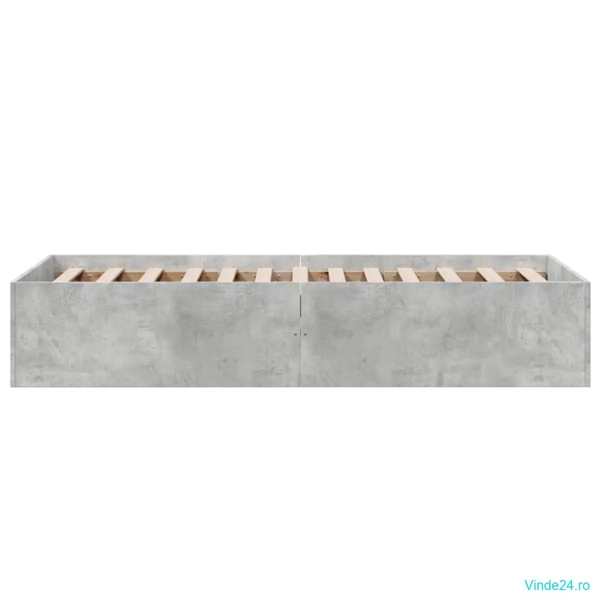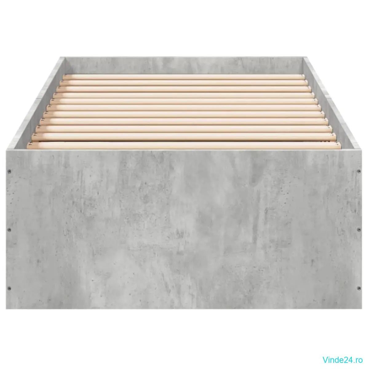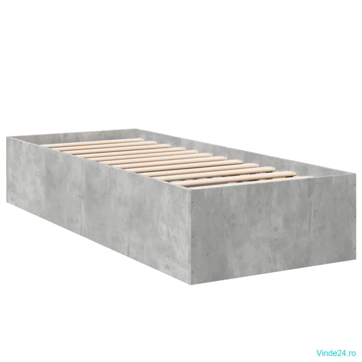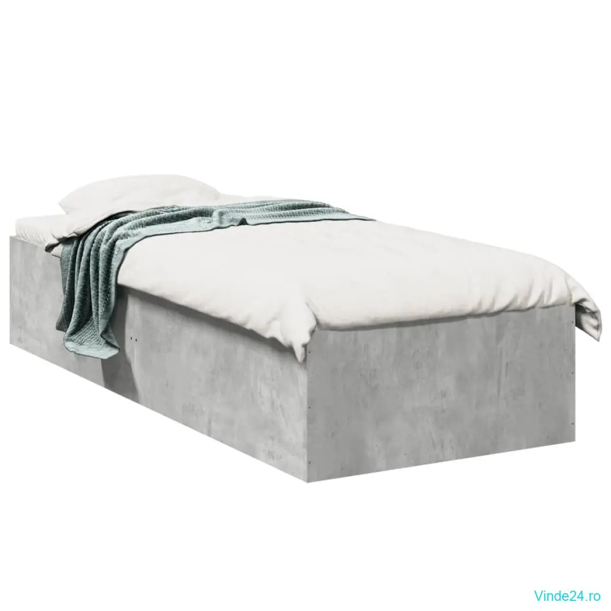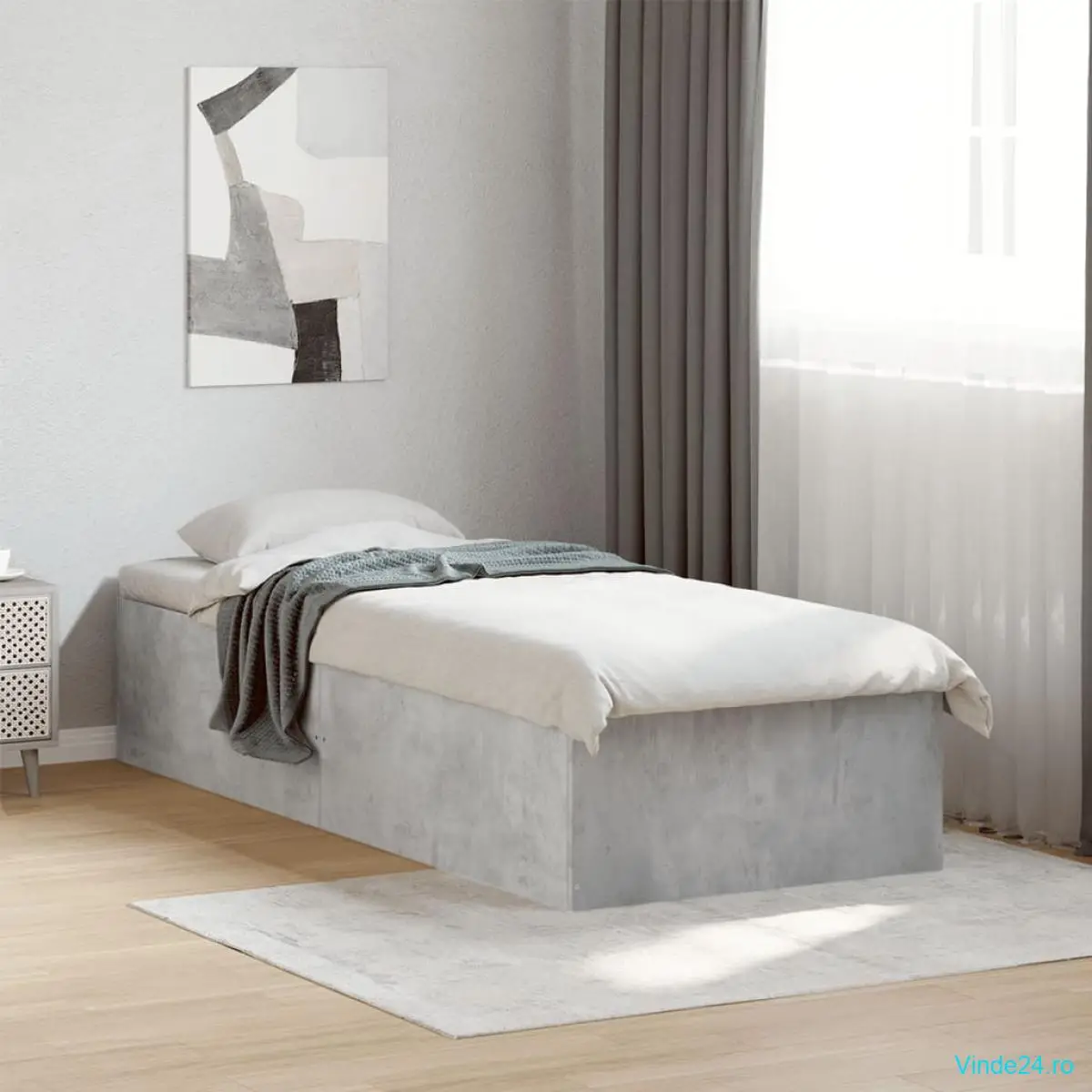 vidaXL Cadru de pat, gri beton, 90x190 cm, lemn prelucrat