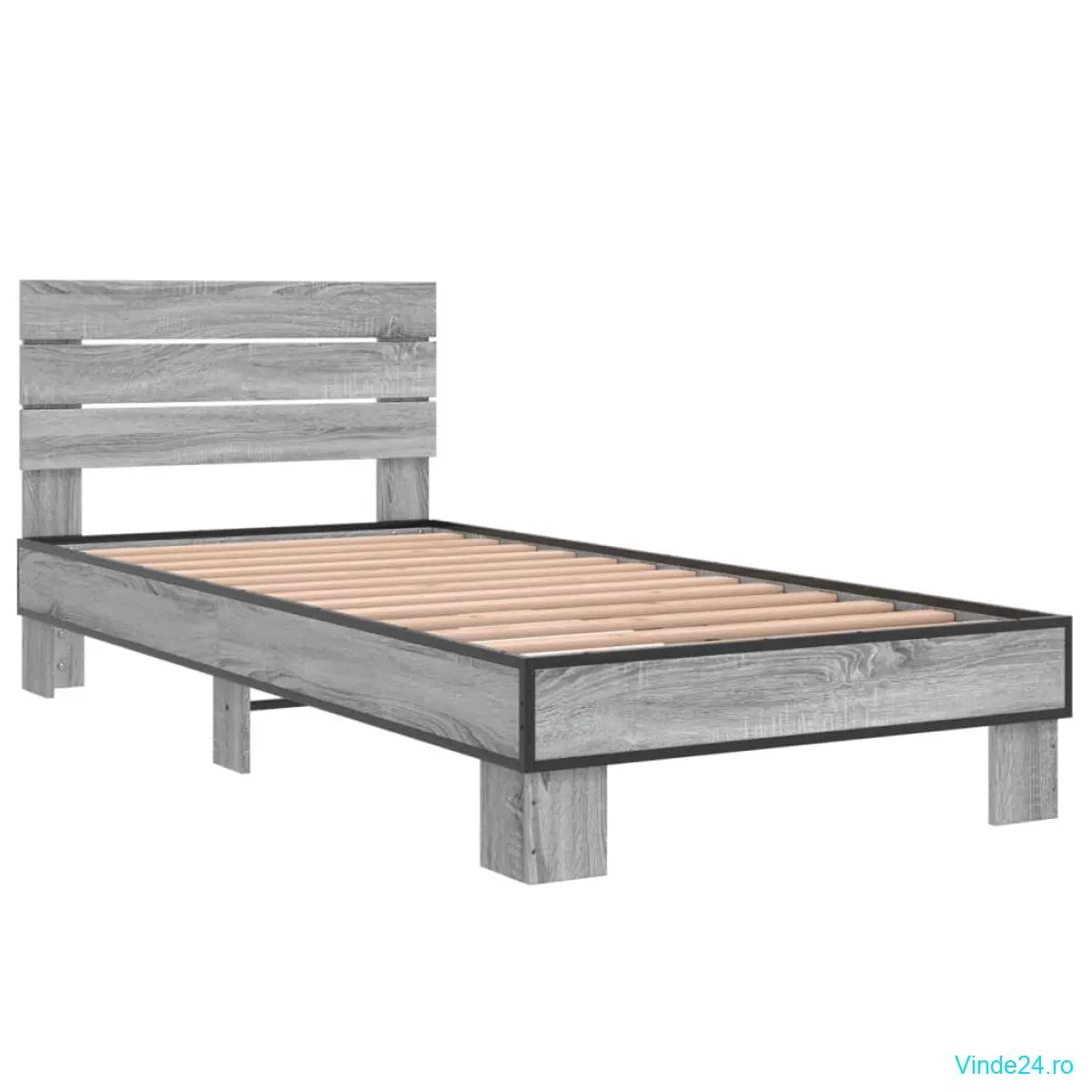 vidaXL Cadru de pat, gri sonoma, 100x200 cm, lemn prelucrat și metal