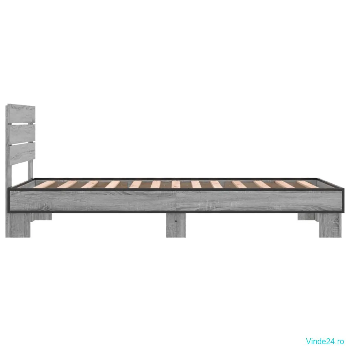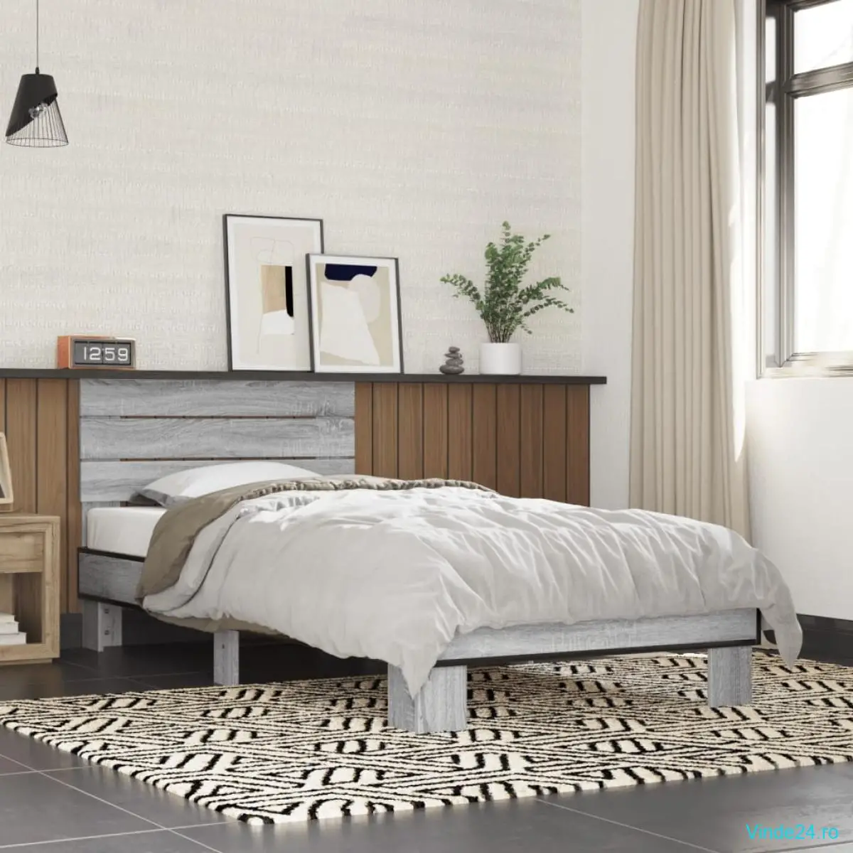 vidaXL Cadru de pat, gri sonoma, 100x200 cm, lemn prelucrat și metal