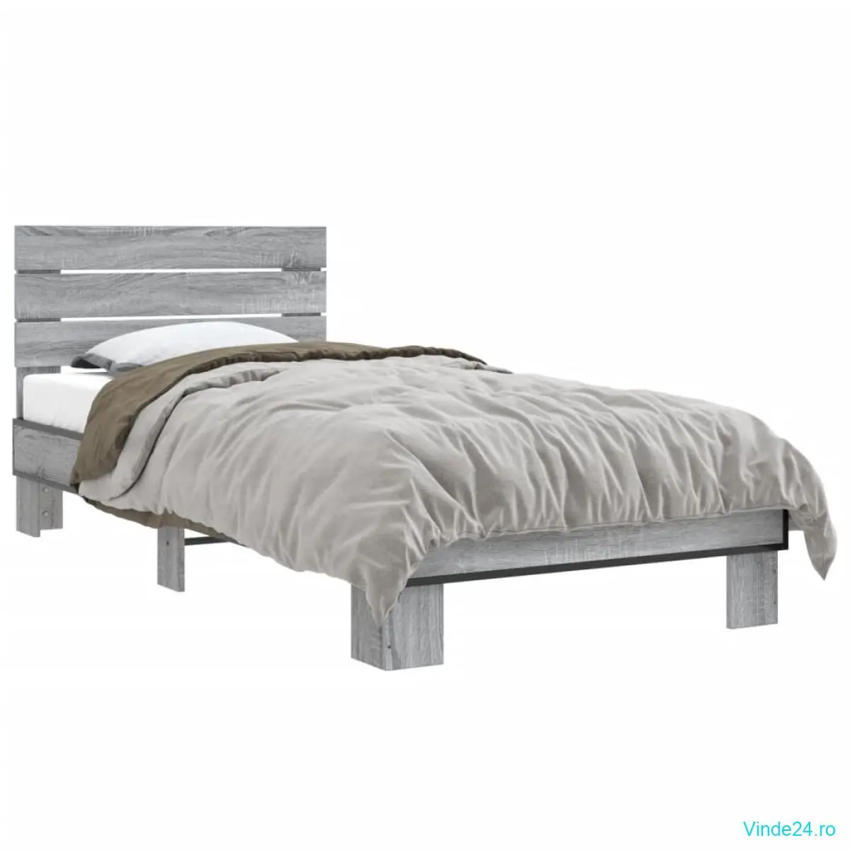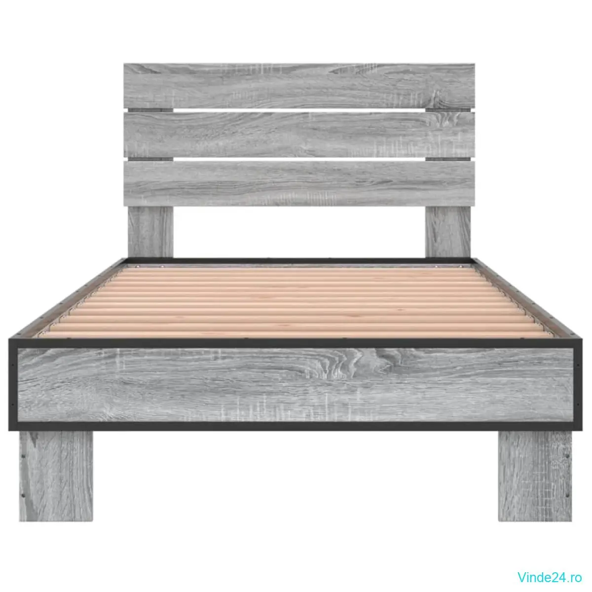vidaXL Cadru de pat, gri sonoma, 100x200 cm, lemn prelucrat și metal