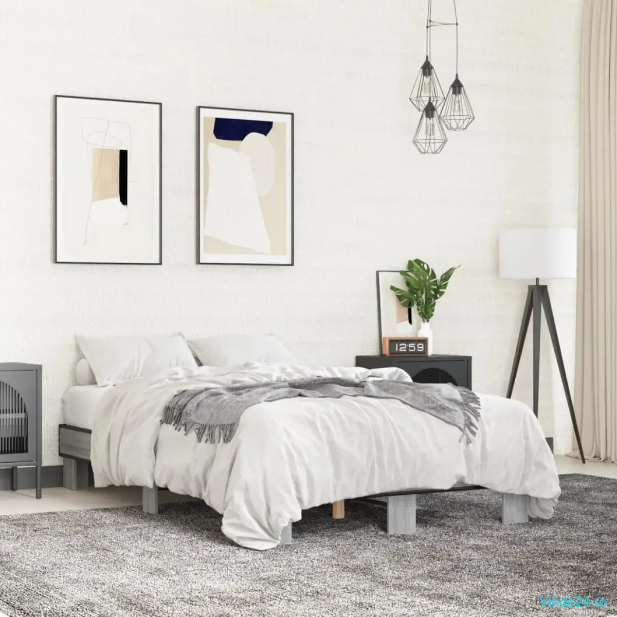 - Material cadru de pat: Lemn prelucrat, metal