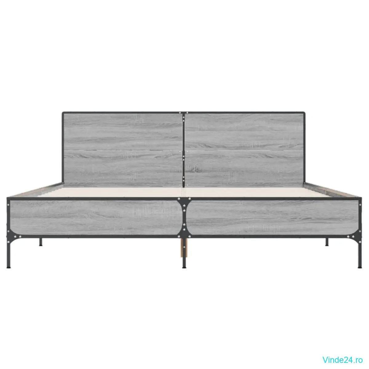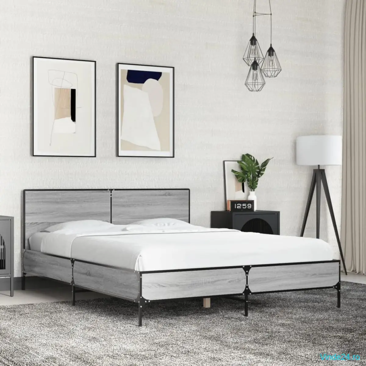vidaXL Cadru de pat, gri sonoma, 120x200 cm, lemn prelucrat și metal