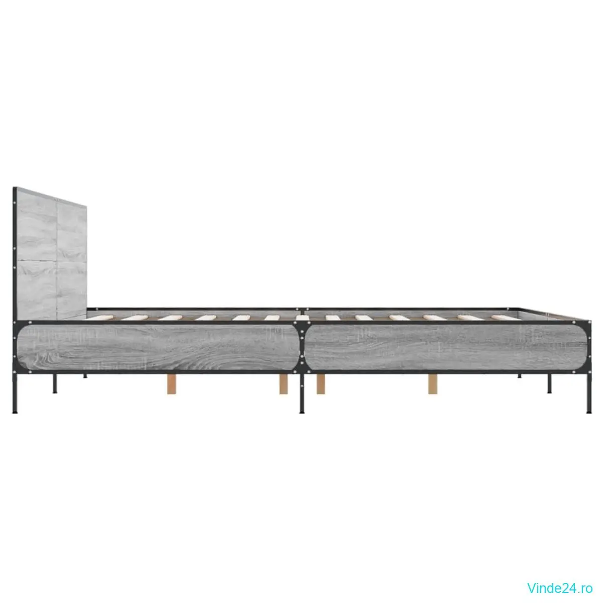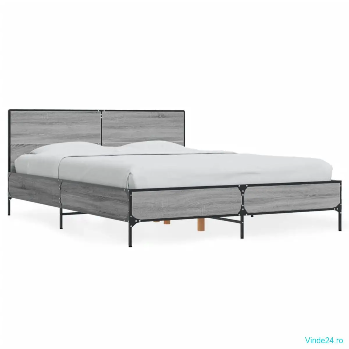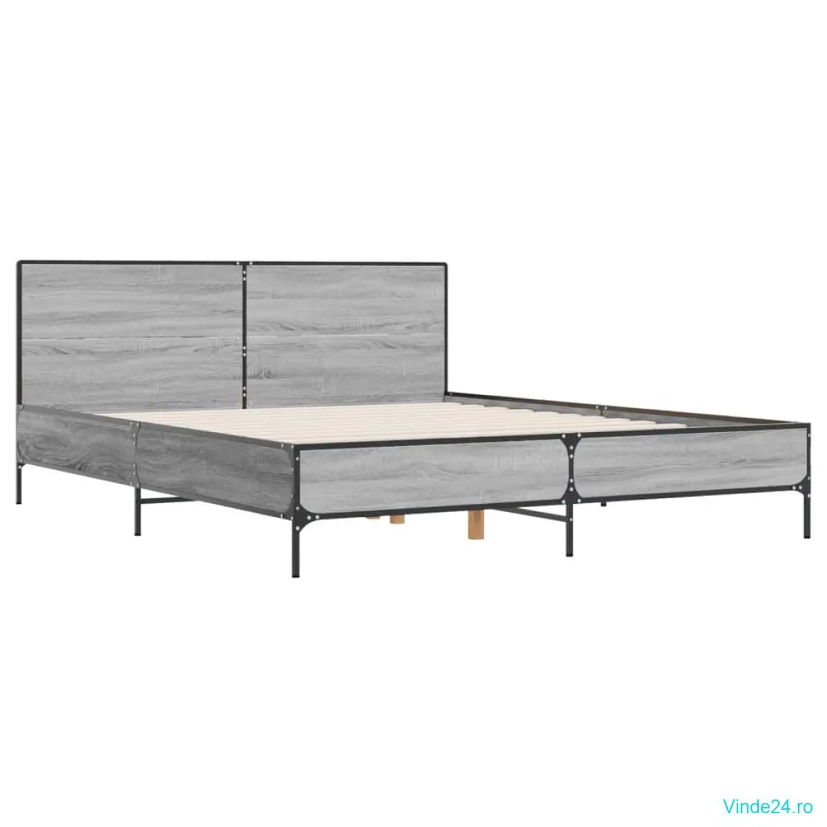 vidaXL Cadru de pat, gri sonoma, 120x200 cm, lemn prelucrat și metal