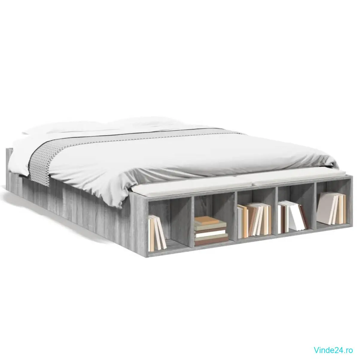 vidaXL Cadru de pat, gri sonoma, 135x190 cm, lemn prelucrat