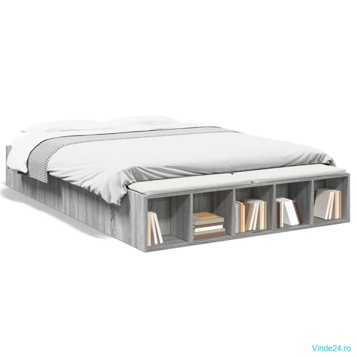 vidaXL Cadru de pat, gri sonoma, 140x200 cm, lemn prelucrat