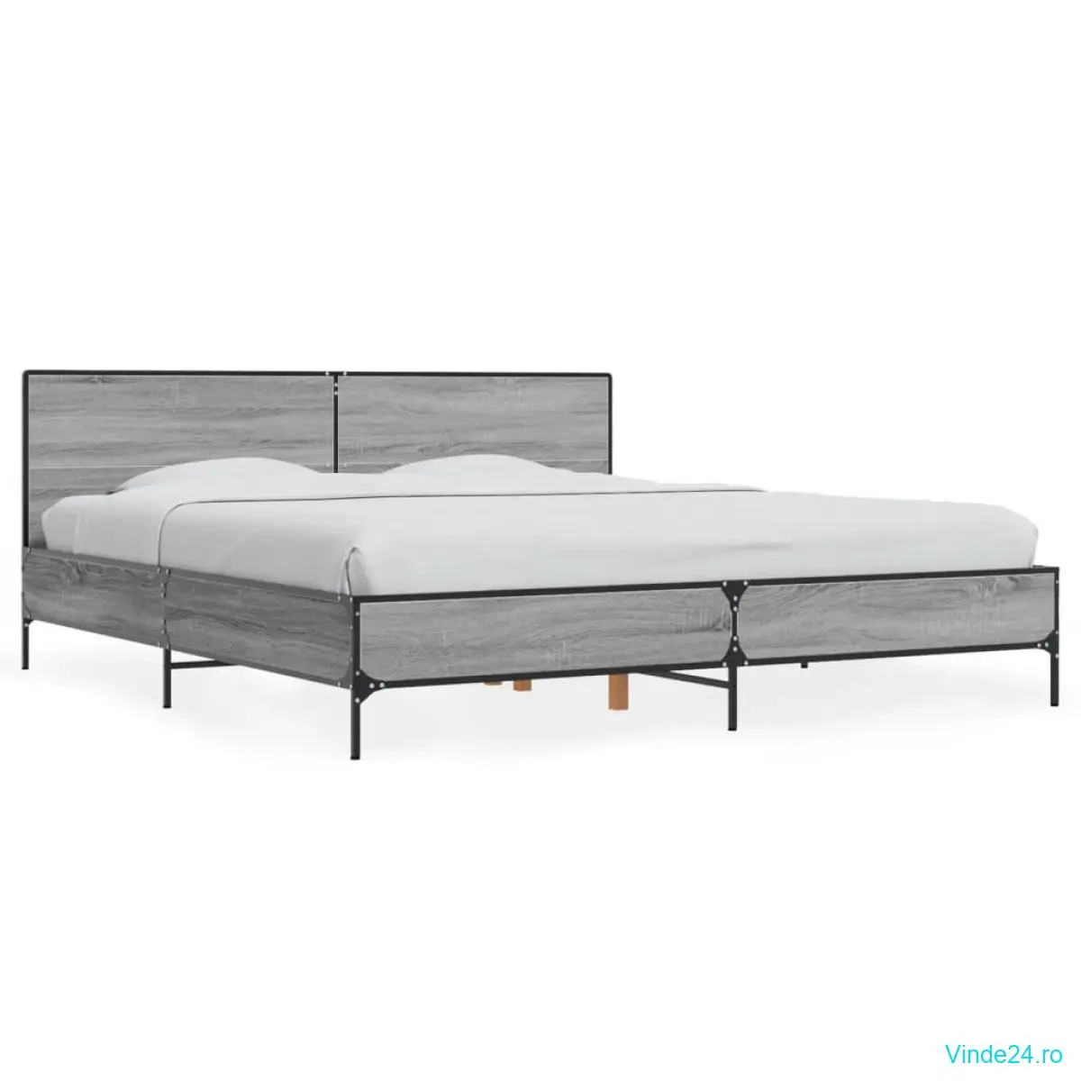 vidaXL Cadru de pat, gri sonoma, 200x200 cm, lemn prelucrat și metal