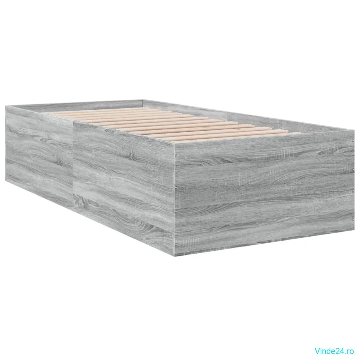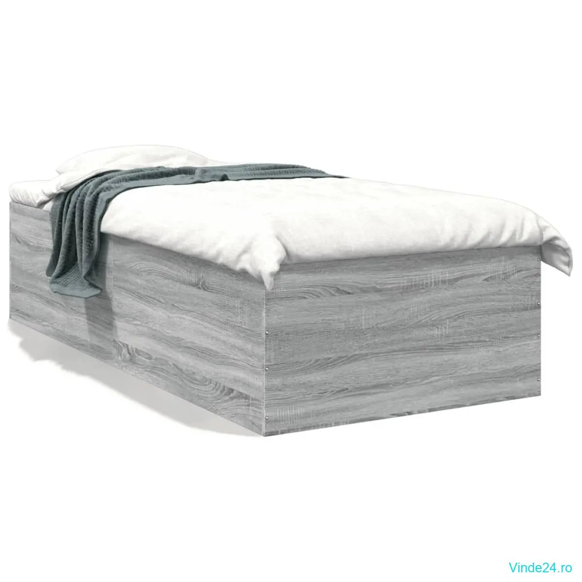 vidaXL Cadru de pat, gri sonoma, 75x190 cm, lemn prelucrat